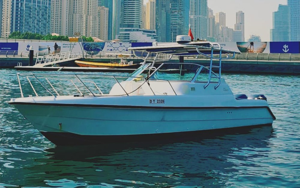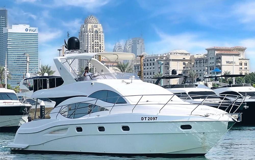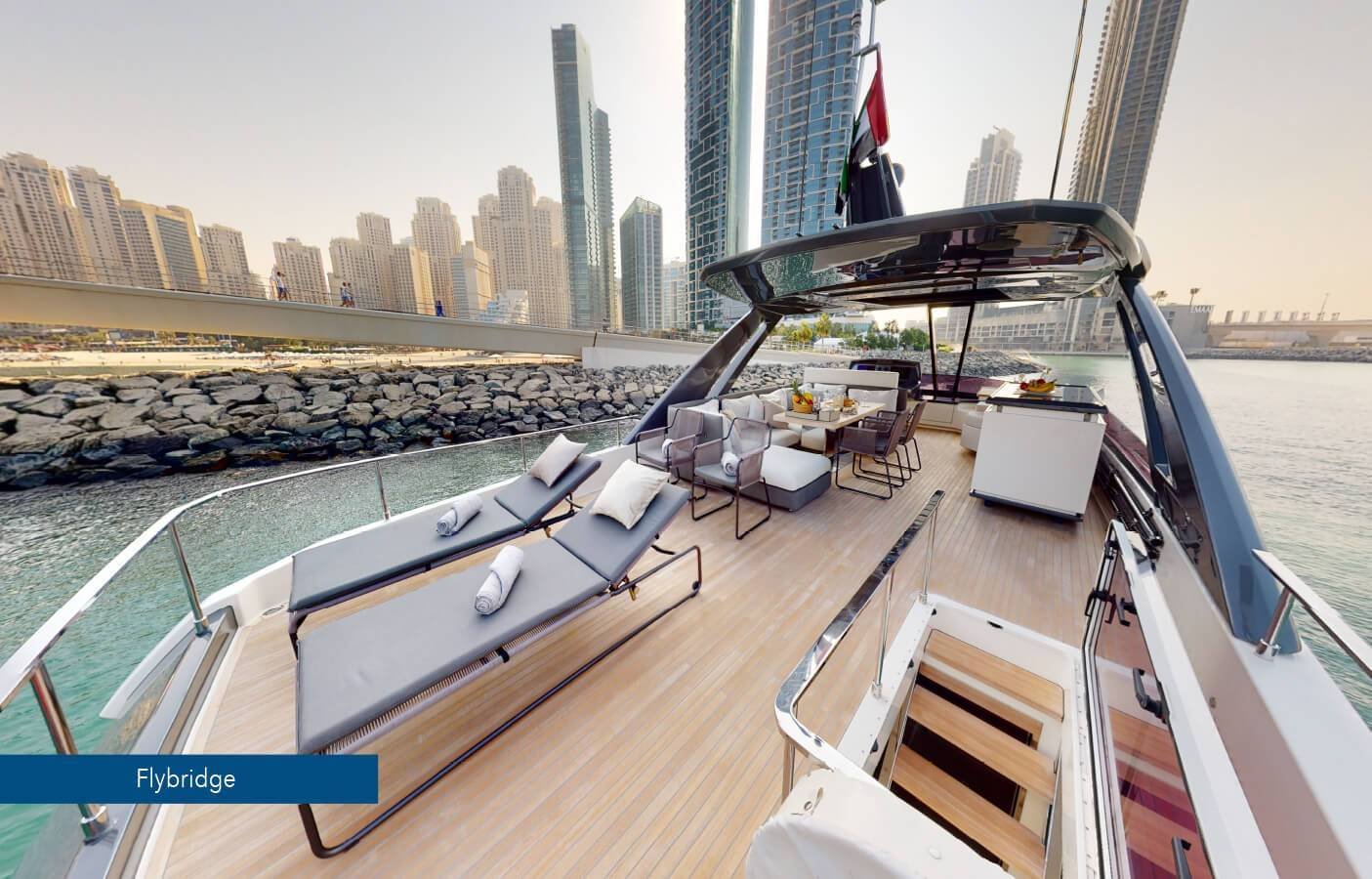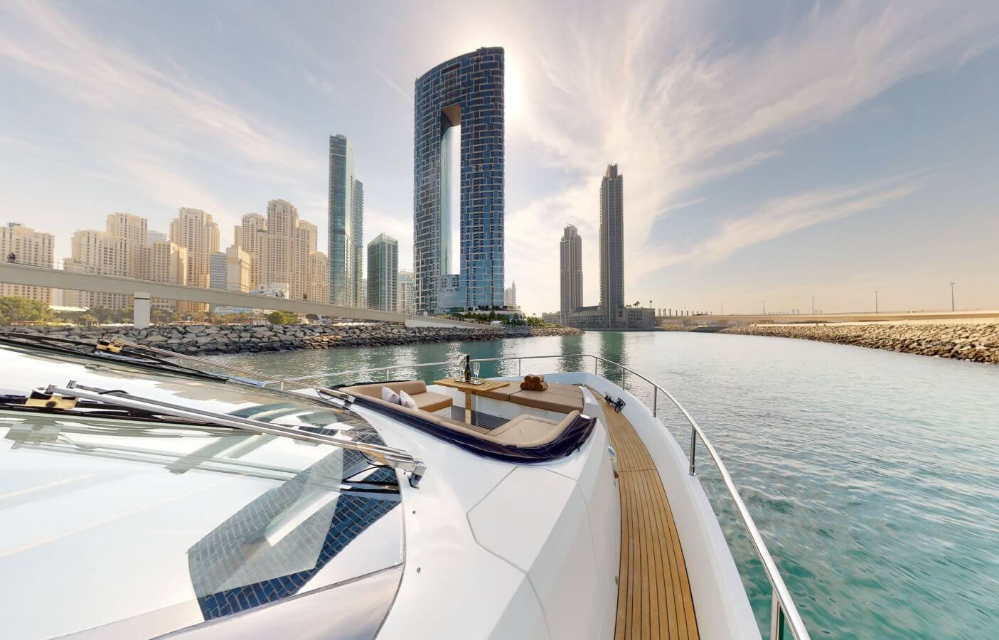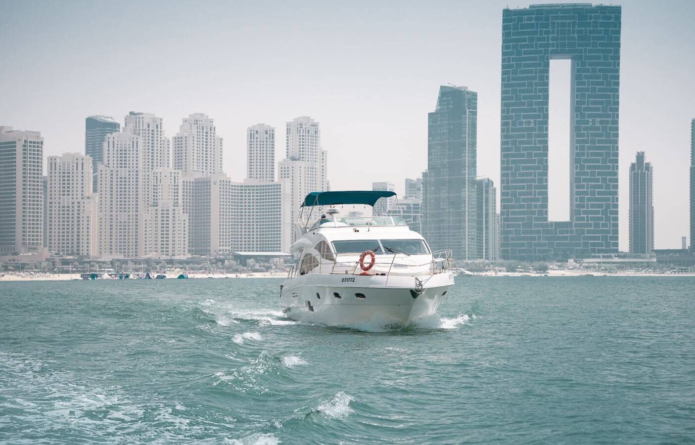 Our company is pleased to present the 88 Feet double-deck Luxury private yacht rental Dubai in Aed 899 each hour . Our Yacht, offering superb amenities for your unforgettable experience. With a spacious hall, two bedrooms, washroom, kitchen, music system, and comfortable seating on the flybridge, this yacht ensures your utmost comfort and enjoyment during your cruise.