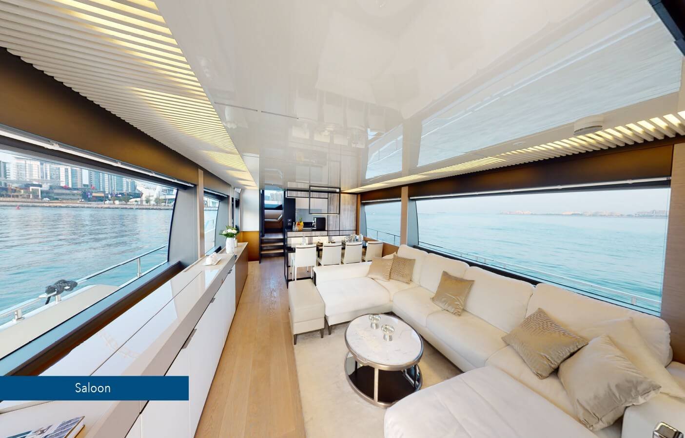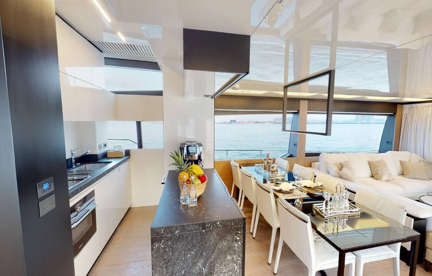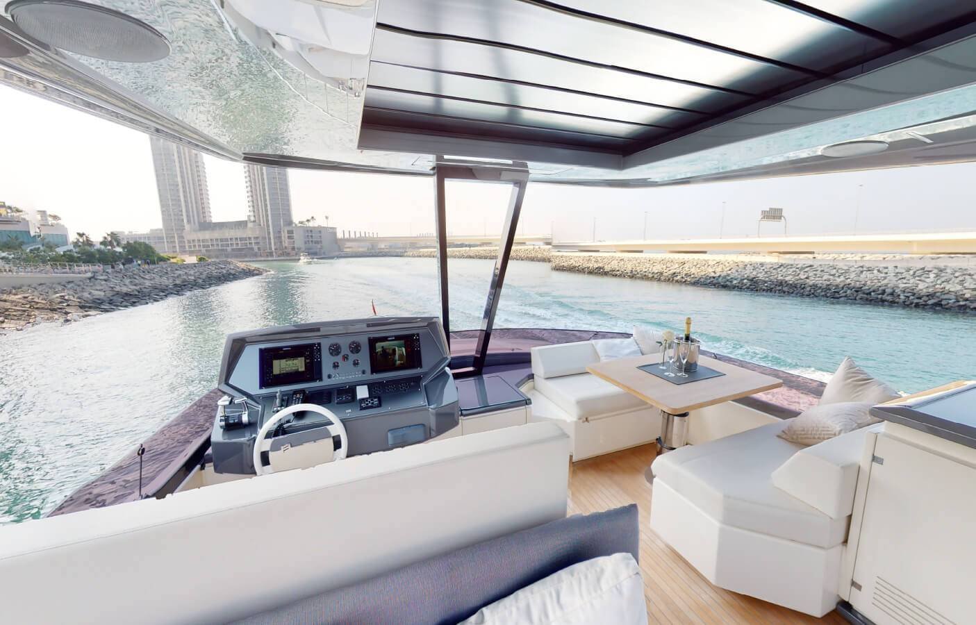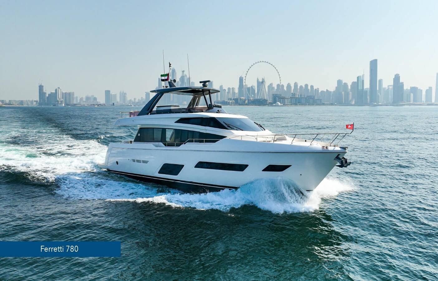 Treat yourself to luxury yachting aboard the exquisite 2019 Ferretti 780, available for charter from just AED 5,000 per hour. Designed to impress, this elegant yacht can accommodate up to 20 guests, making it the perfect choice for unforgettable meetings and celebrations.
