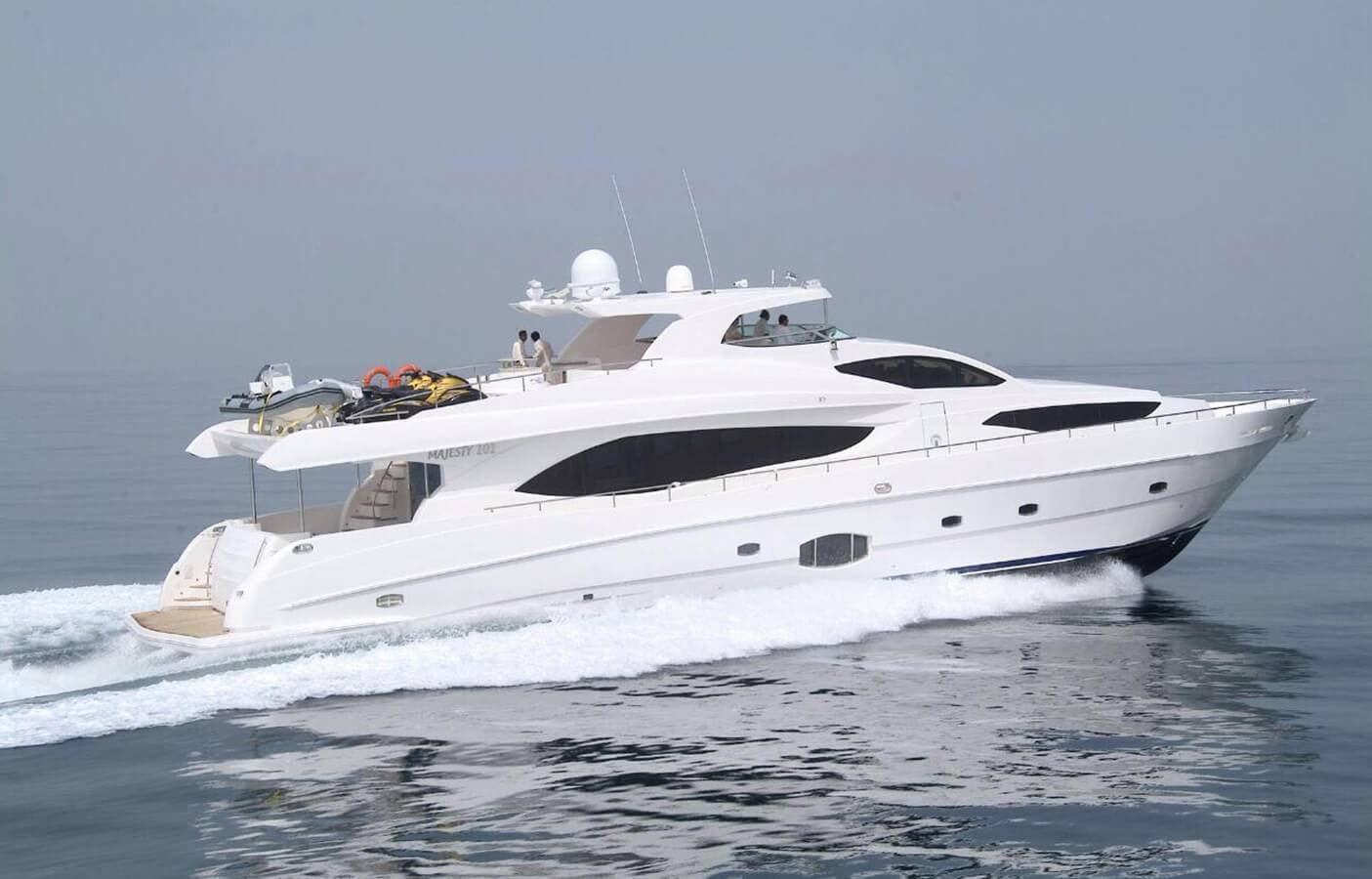 We are pleased to offer you the Top rated Majesty Brand Super Luxury 101 Feet yacht in Aed 2899 per hour only with the capacity of 58 guest with Super luxury facilities and Experienced staff. The yacht length is 101 FT and it has 4 Cabins + 4 toilets,3 Showers + Kitchen as well.and the very nice sitting place on the fly bridge as well.