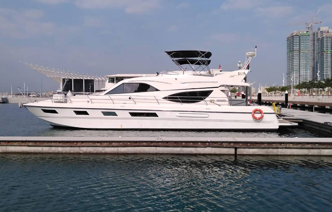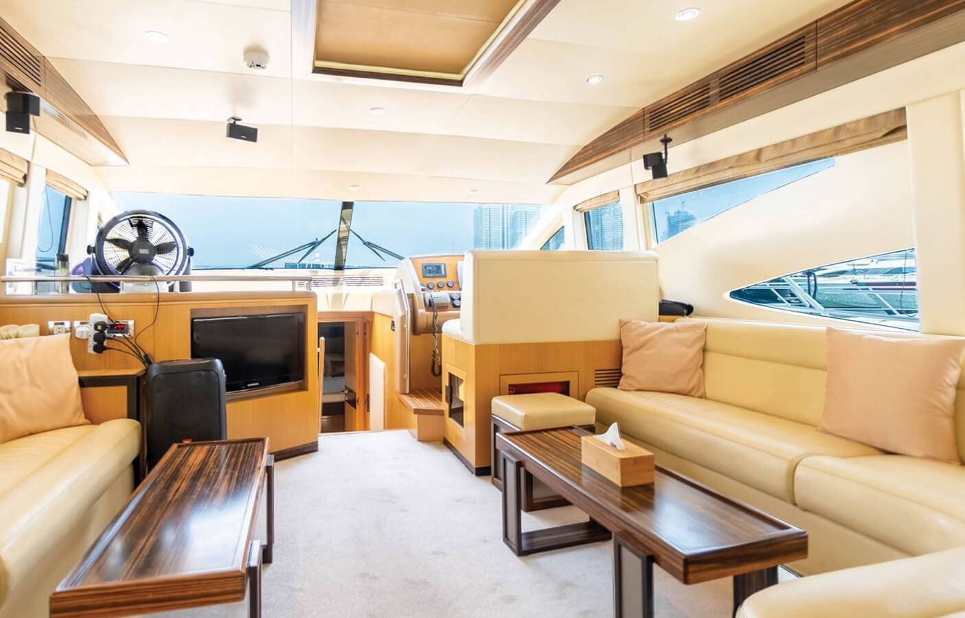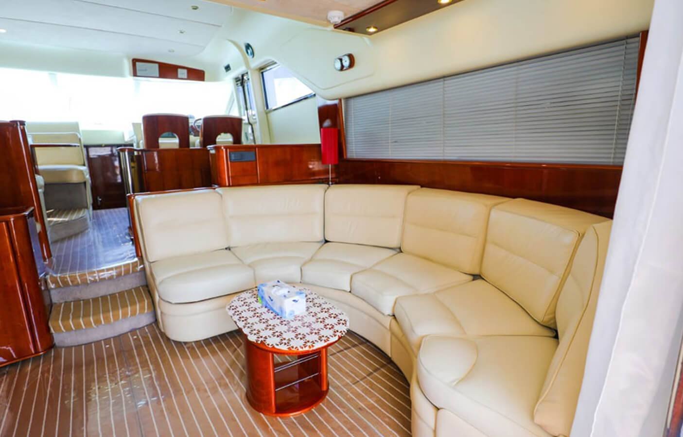 Our company is pleased to offer you the Top brand Princess 60 Feet Luxury Air-conditioned double deck Yacht good for 20 Guest Capacity with a 3 bedrooms Spacious lounge, 2 washrooms, kitchen, satellite television with a music system as well. Our price is Aed 599 per Hour only. Our offer includes water, soft drinks and ice along with music system and a Fully Air-conditioned yacht and you are allowed to bring your own food and drinks in the yacht also.
