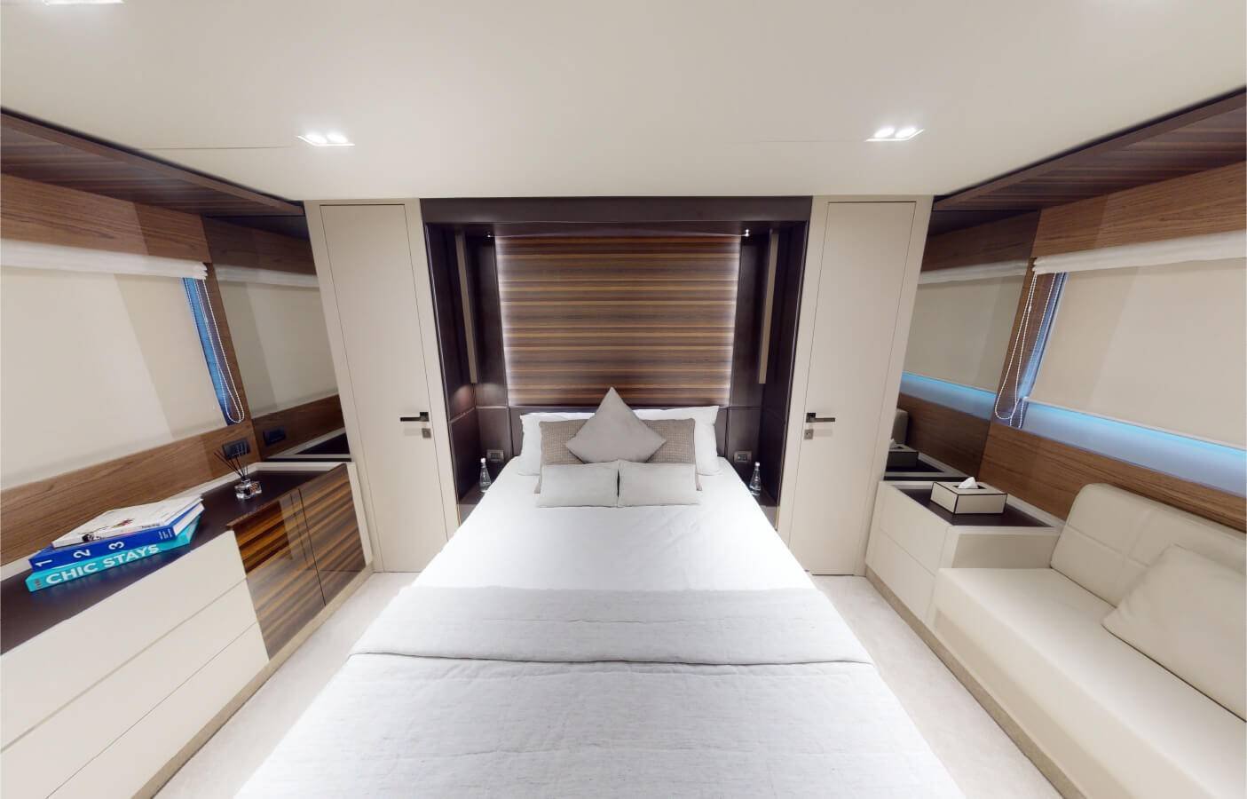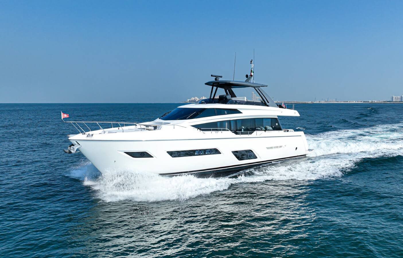 The Premium Ferretti 670 yacht, managed by Yacht Rental Dubai, is located in Dubai, UAE, offering an exceptional luxury cruising experience. Built in 2019 by the prestigious Ferretti brand, this stunning yacht features 3 elegant rooms and can comfortably accommodate up to 15 guests. Operated by 3 professional and highly experienced crew members, the Ferretti 670 ensures a seamless and enjoyable voyage.