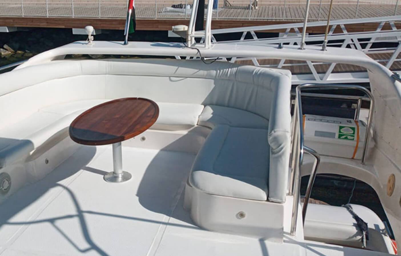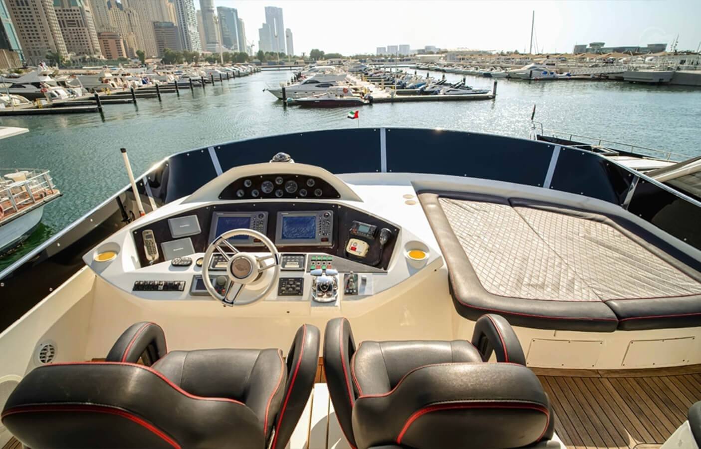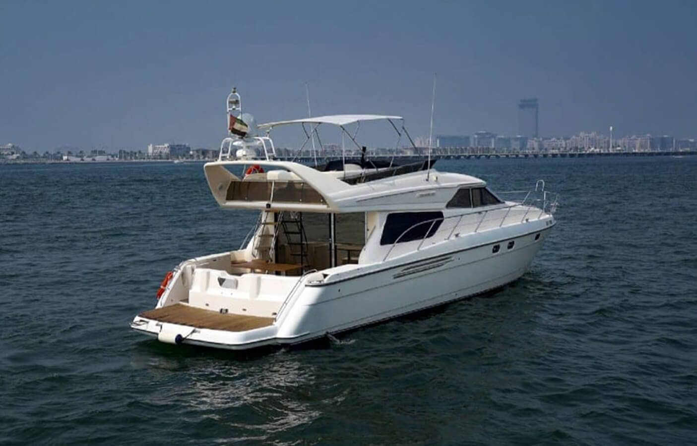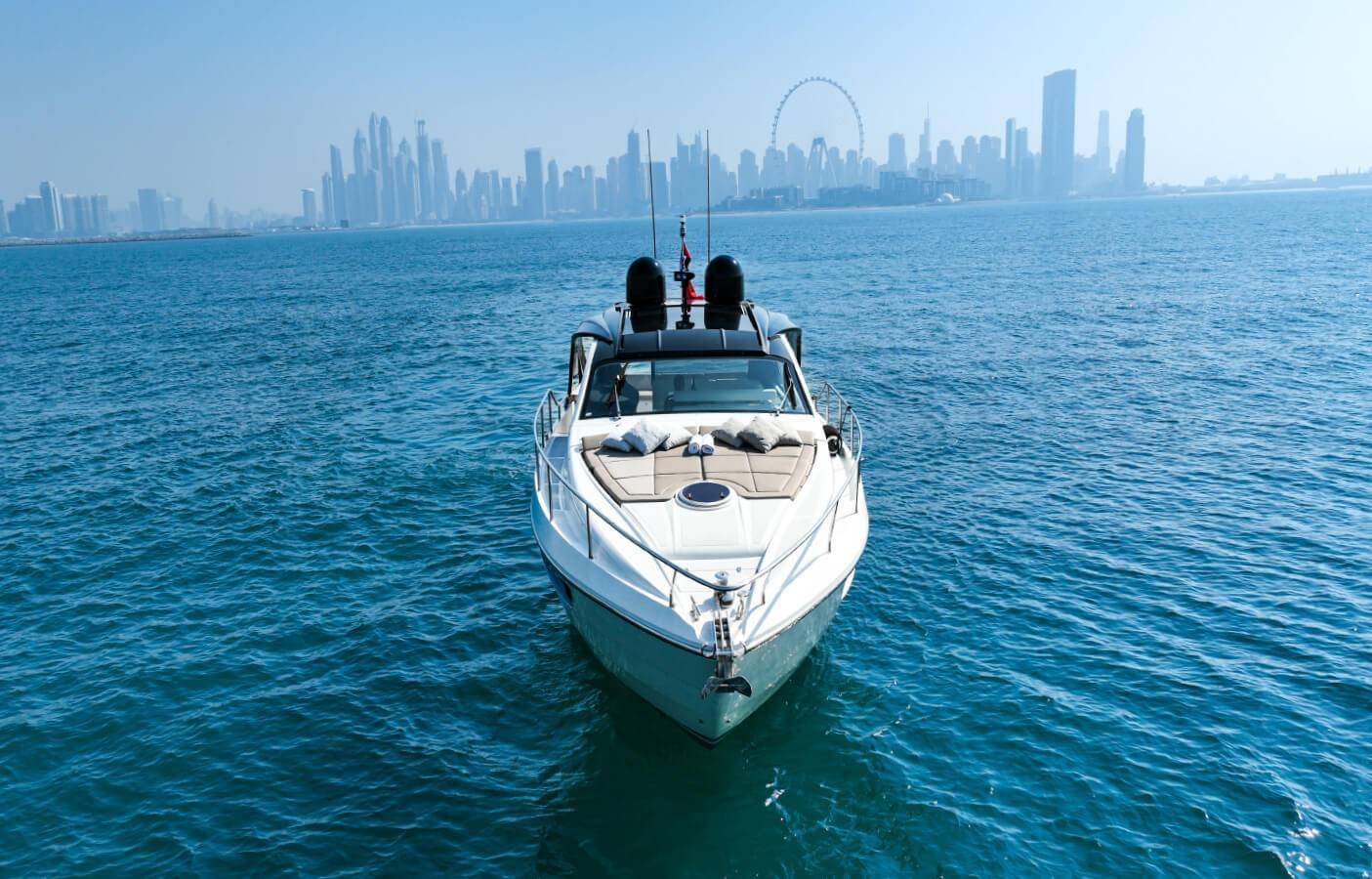 This luxury yacht is designed with exquisite designs and onboard facilities to be a unique private yacht from the Sunseeker collection. With this private boat hire, you will enjoy a Flybridge comprising an exceptional open deck and lounge seating. Equipped with a modern entertainment system and a stereo-sound Bose PA audio system, this luxury yacht rental service have become a popular choice available at reasonable prices in Dubai.