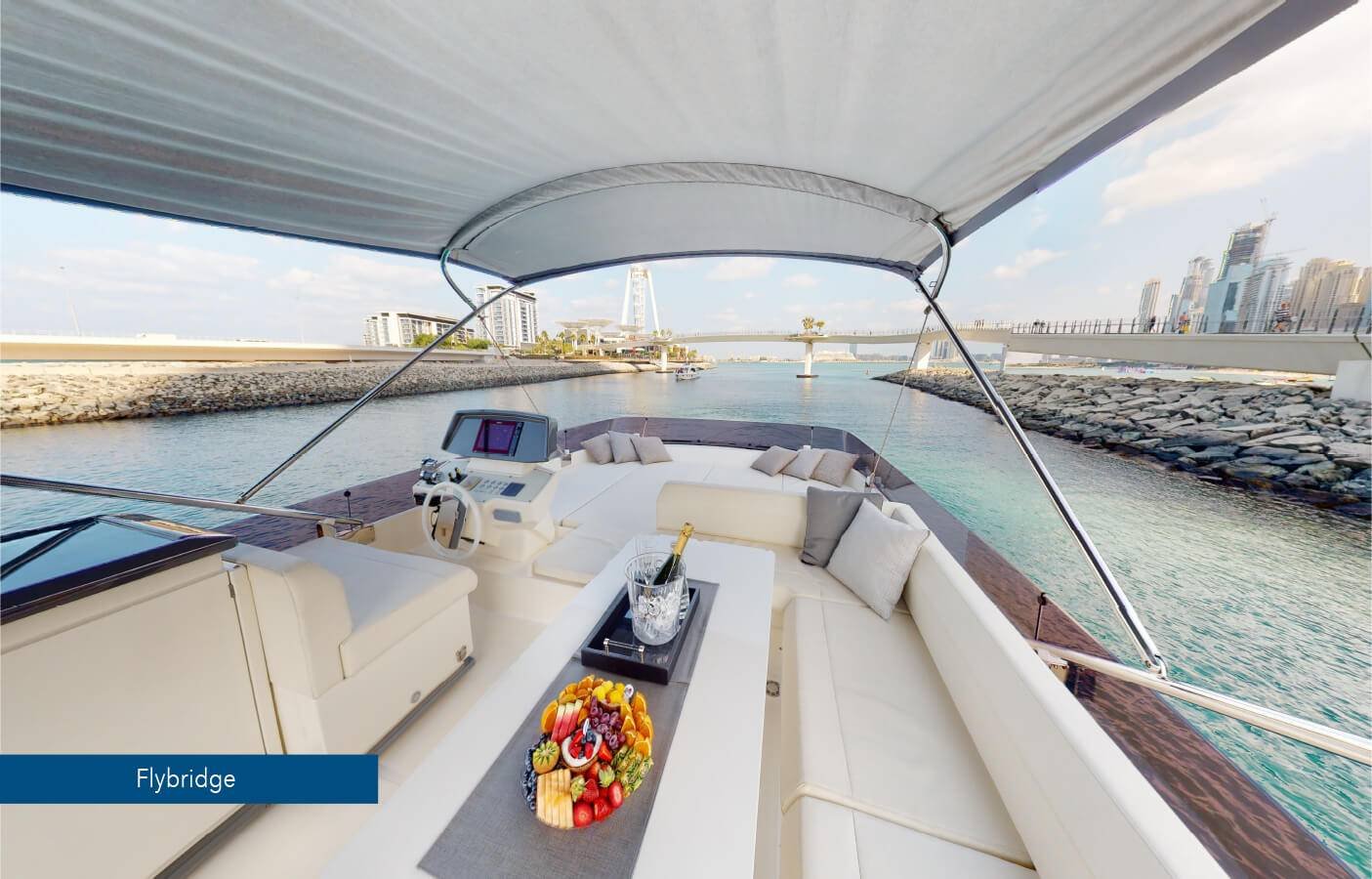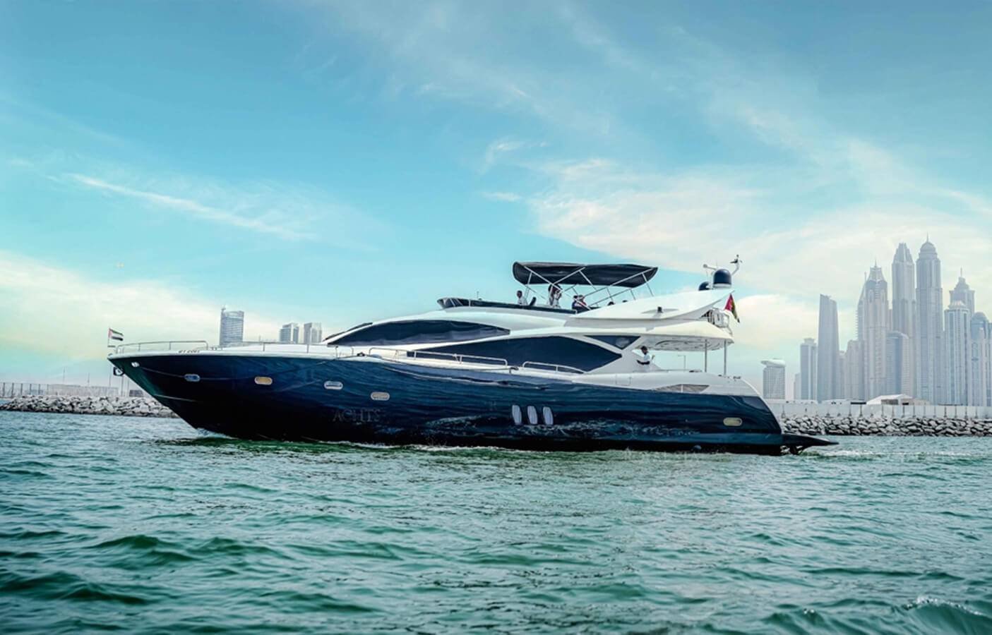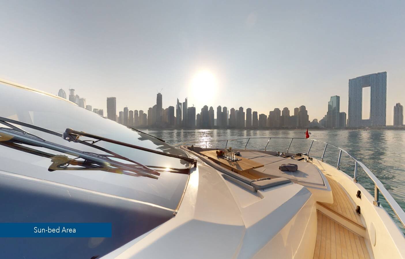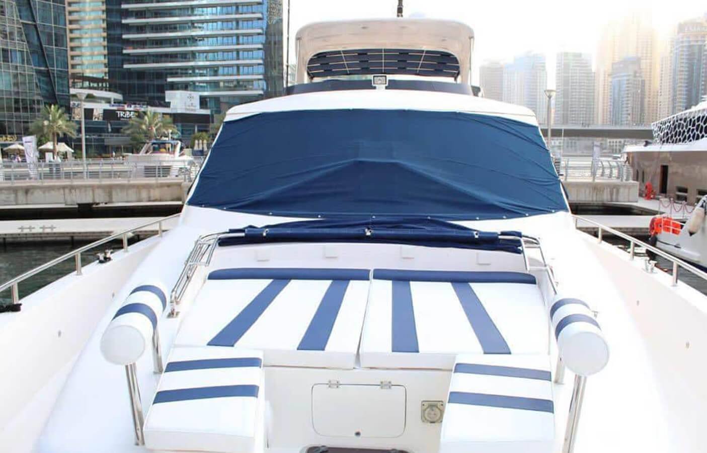 This luxury yacht is designed with exquisite designs and onboard facilities to be a unique private yacht from the Sunseeker collection. With this private boat hire, you will enjoy a Flybridge comprising an exceptional open deck and lounge seating. Equipped with a modern entertainment system and a stereo-sound Bose PA audio system, this luxury yacht rental service have become a popular choice available at reasonable prices in Dubai.