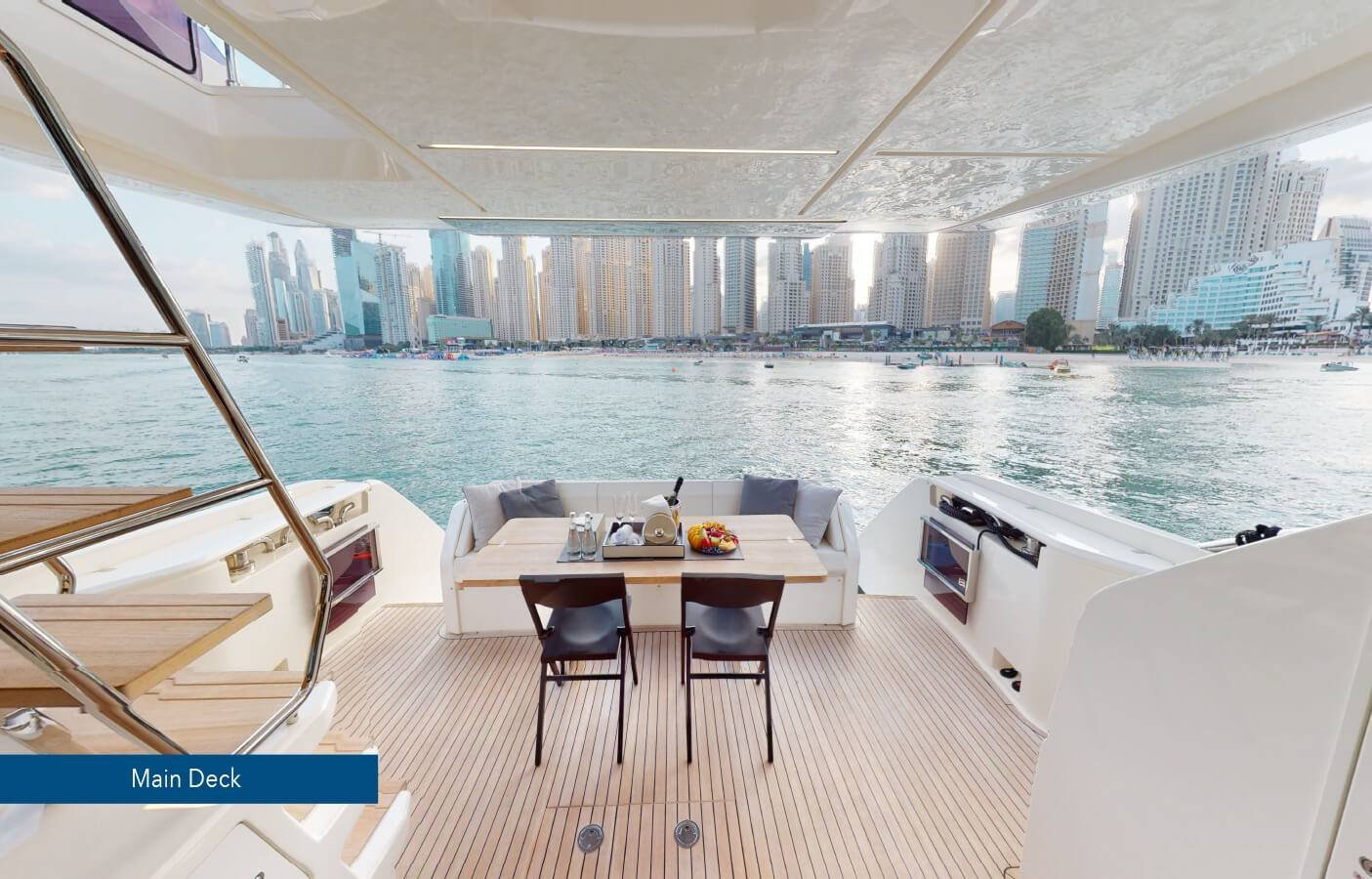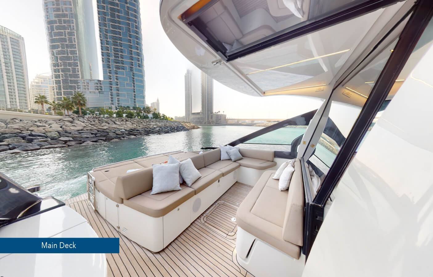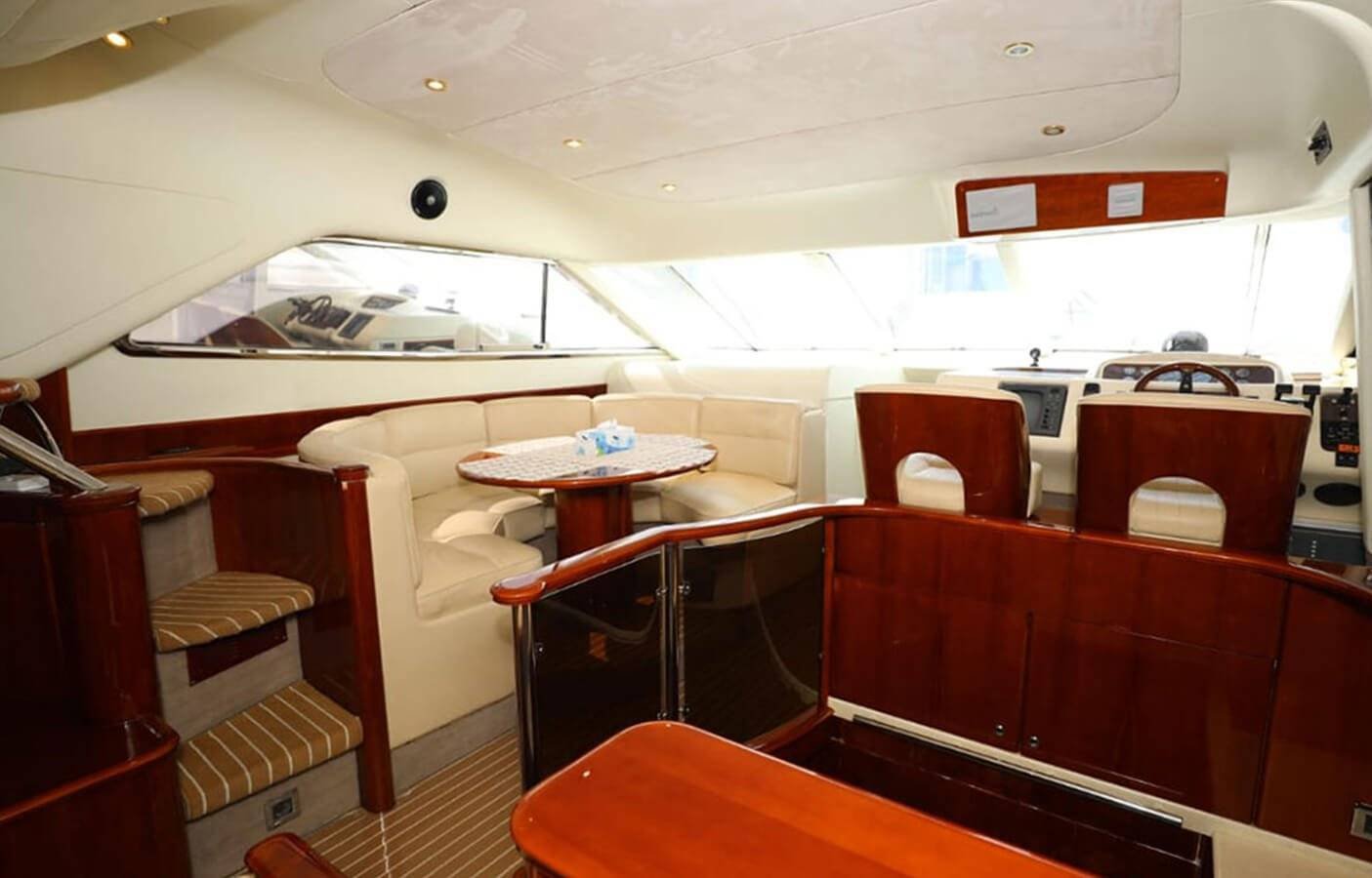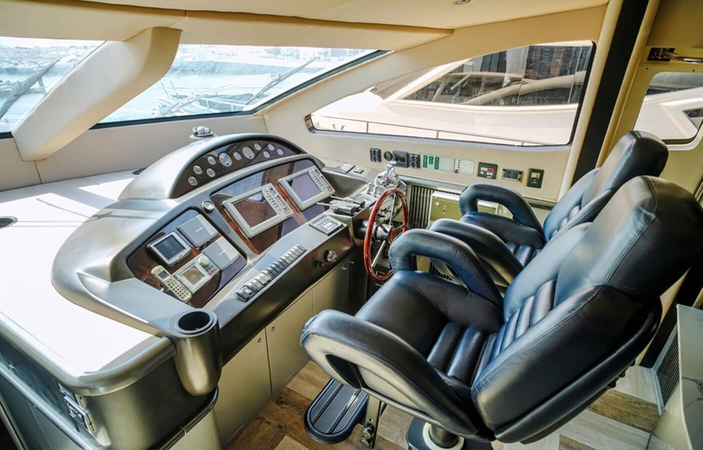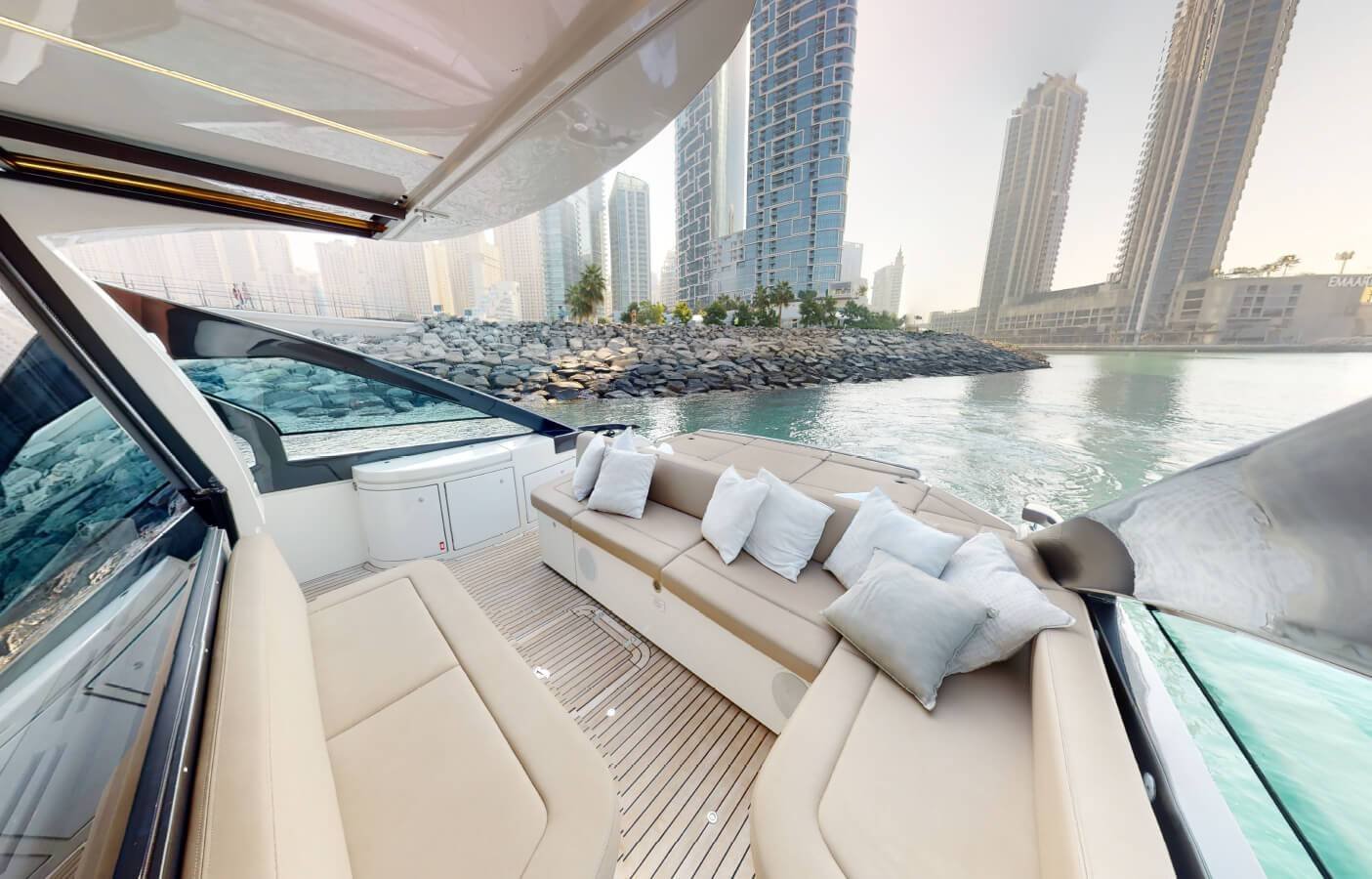 This luxury yacht is designed with exquisite designs and onboard facilities to be a unique private yacht from the Sunseeker collection. With this private boat hire, you will enjoy a Flybridge comprising an exceptional open deck and lounge seating. Equipped with a modern entertainment system and a stereo-sound Bose PA audio system, this luxury yacht rental service have become a popular choice available at reasonable prices in Dubai.
