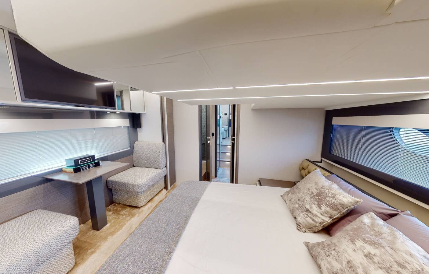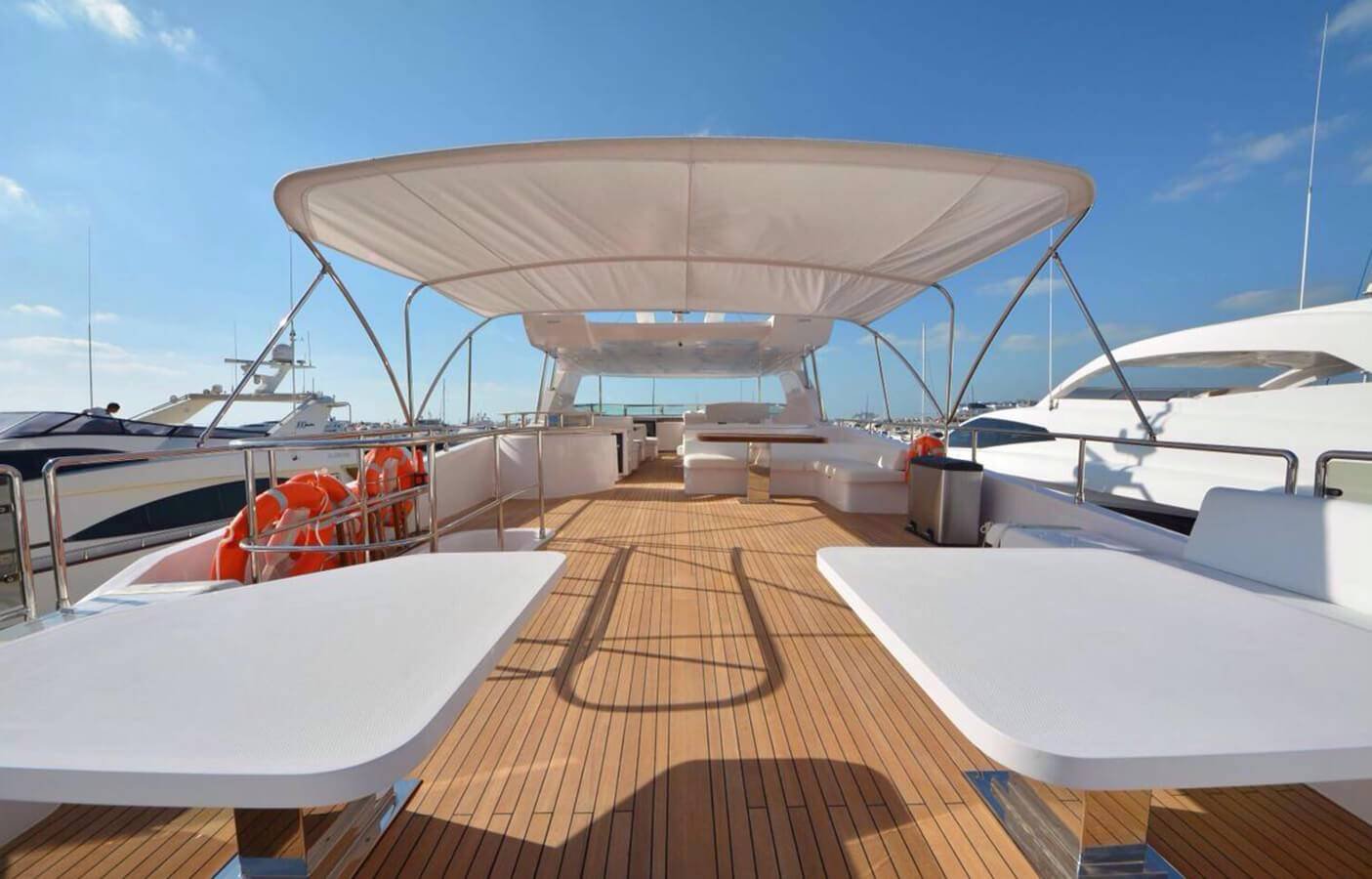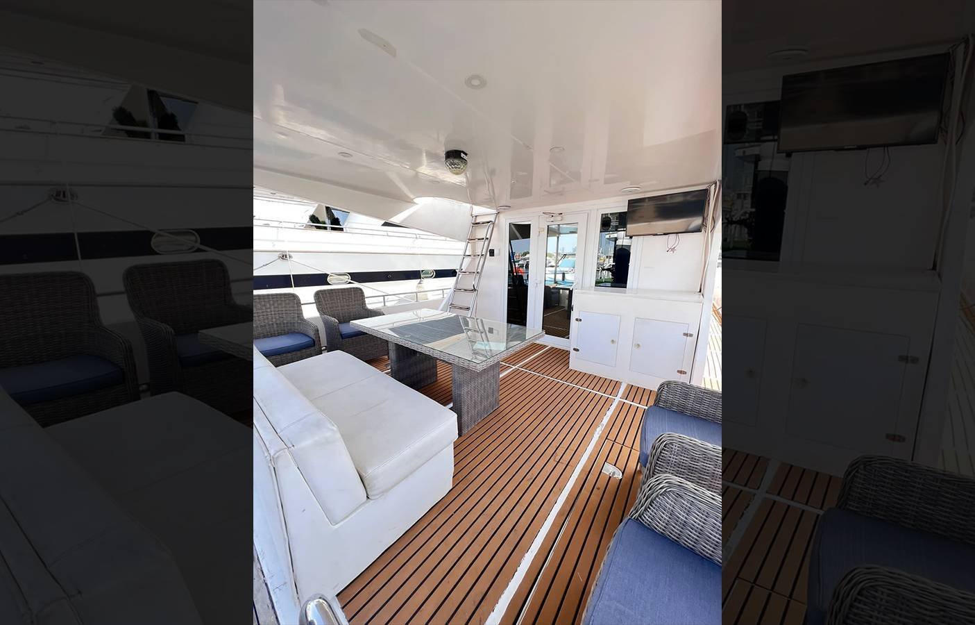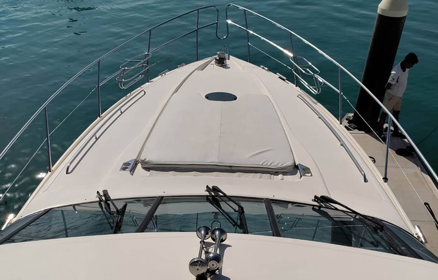 This luxury yacht is designed with exquisite designs and onboard facilities to be a unique private yacht from the Sunseeker collection. With this private boat hire, you will enjoy a Flybridge comprising an exceptional open deck and lounge seating. Equipped with a modern entertainment system and a stereo-sound Bose PA audio system, this luxury yacht rental service have become a popular choice available at reasonable prices in Dubai.