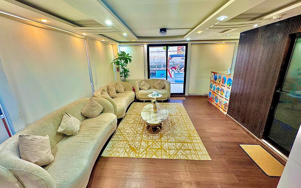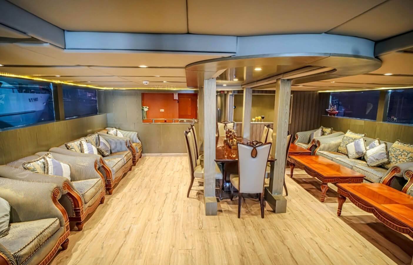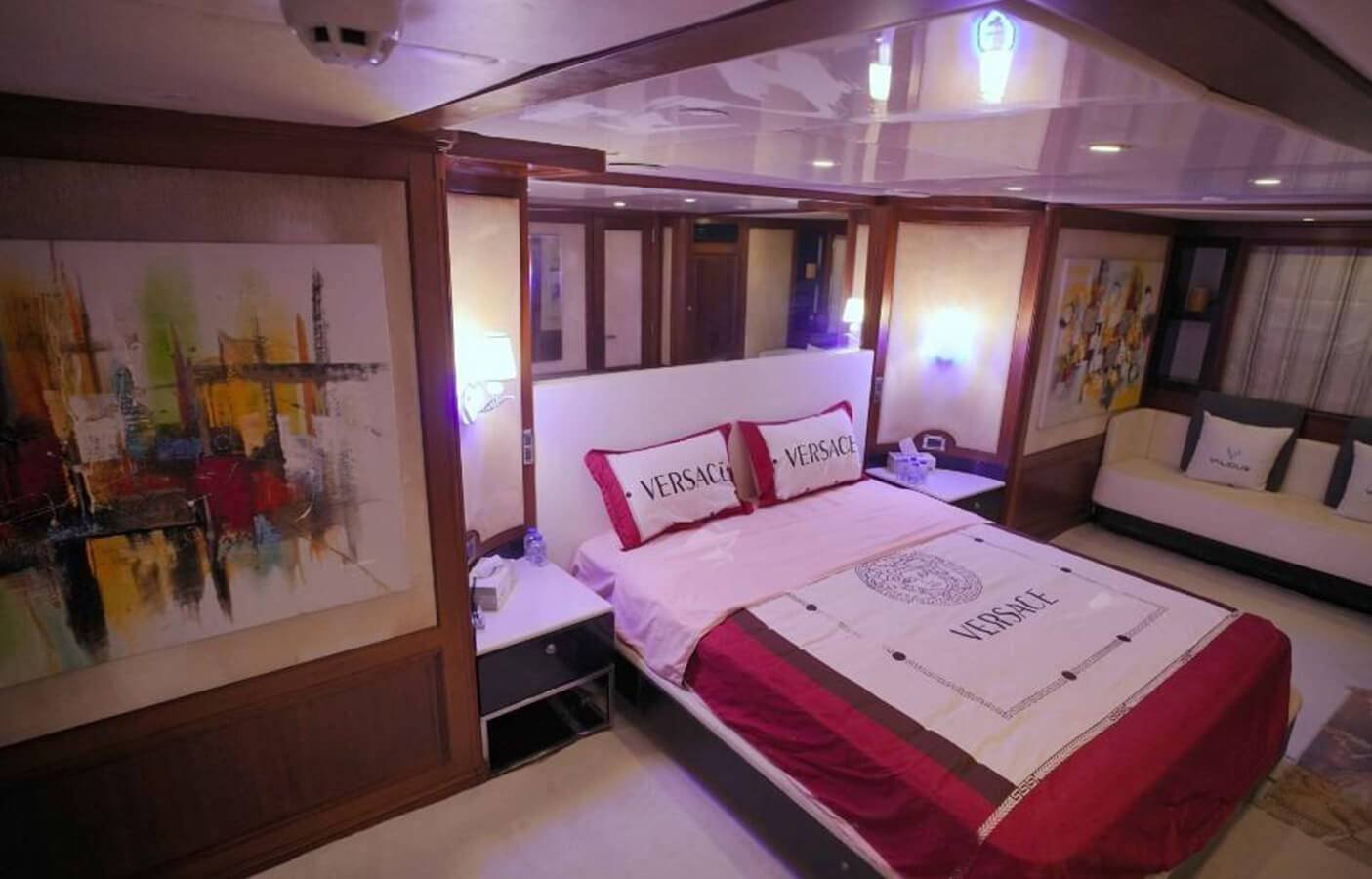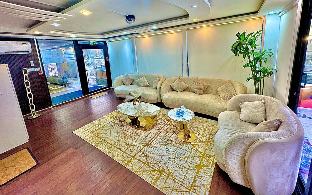 You can also make the private yacht booking of This Super Luxury 135 feet Yacht which is having 4-bed room with 2 very spacious Hall along with the washroom kitchen Satellite television, Music system and the very nice sitting place on the fly bride as well. Our price is Aed 3999 Each hour Only . Our offer include the water soft drinks and ice along with very good music system and fully Air conditioned yacht and you can also bring your own food and drinks in yacht.