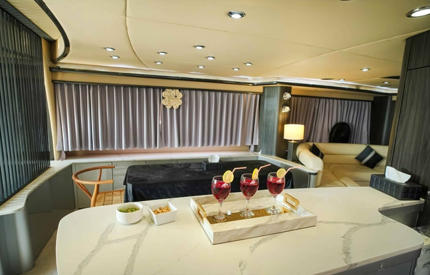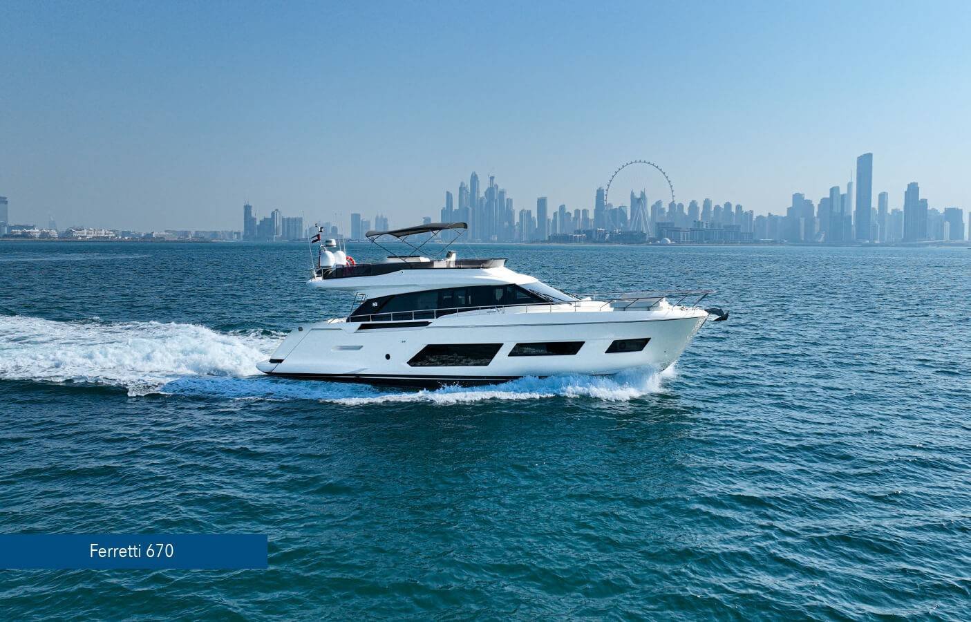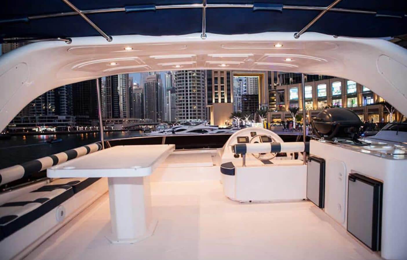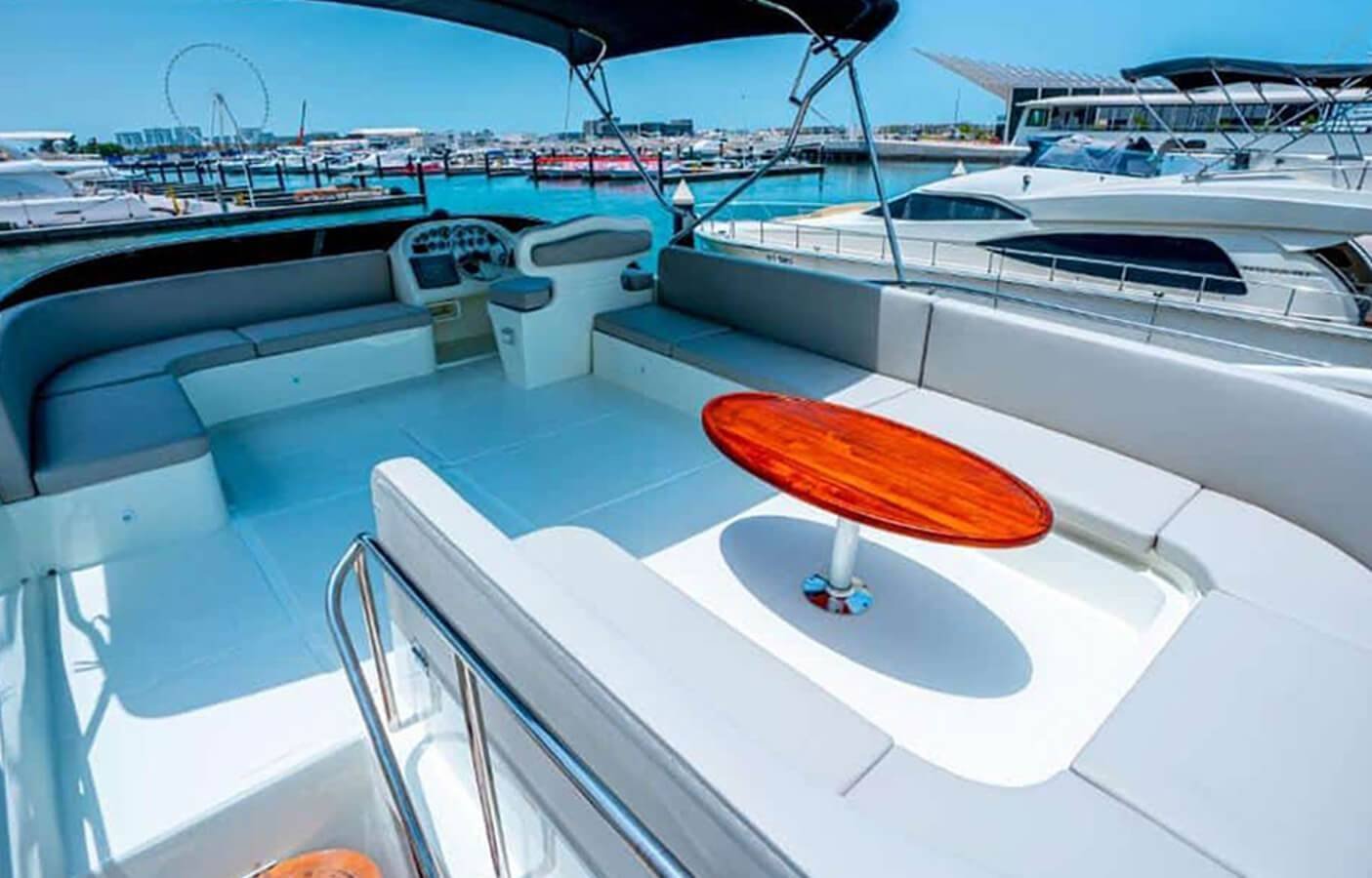 Guests can also enjoy barbecue service on board, with equipment available upon prior request. Experience the elegance and performance of the Ferretti 670 as you explore Dubai’s breathtaking coastline available through Yacht Rental Dubai for AED 2,499 per hour.