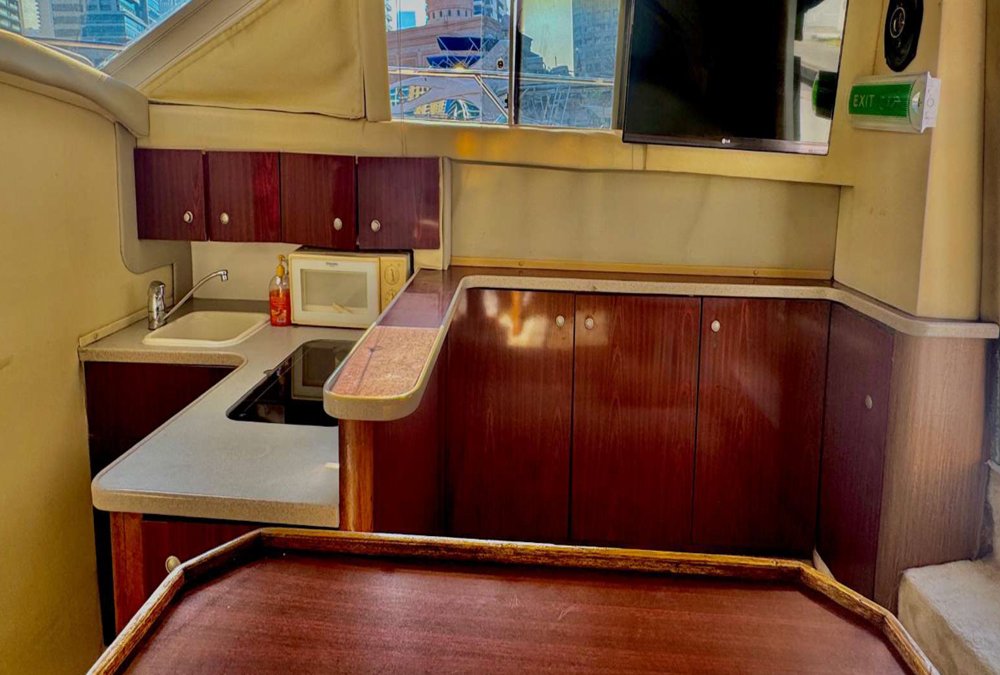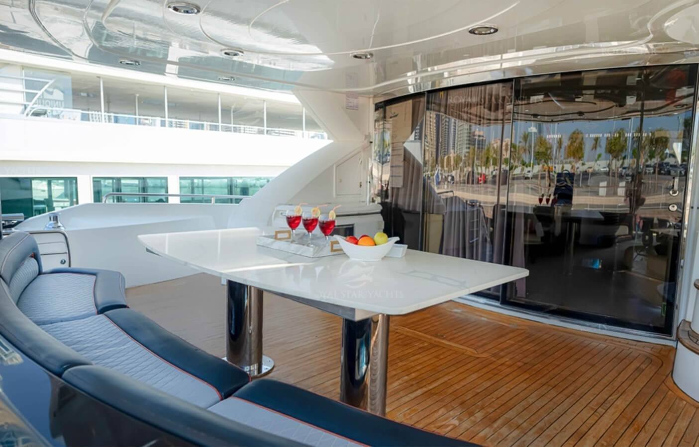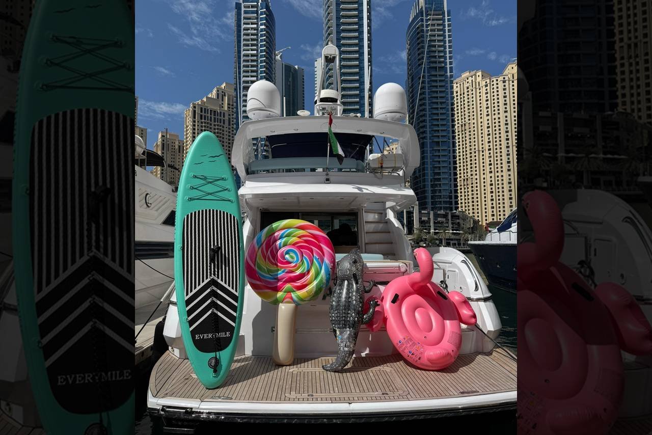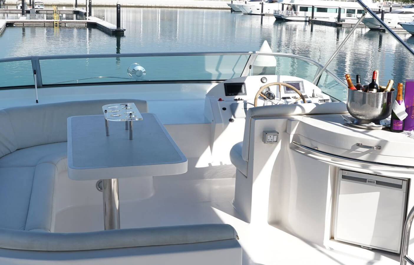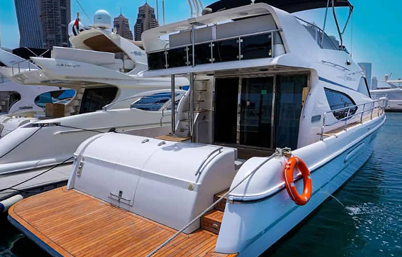 Guests can also enjoy barbecue service on board, with equipment available upon prior request. Experience the elegance and performance of the Ferretti 670 as you explore Dubai’s breathtaking coastline available through Yacht Rental Dubai for AED 2,499 per hour.