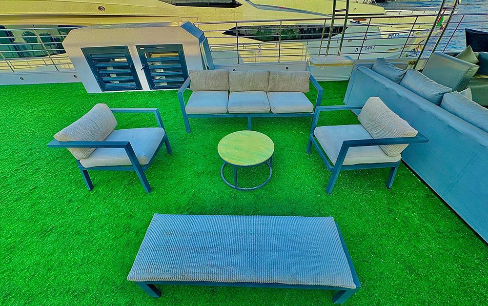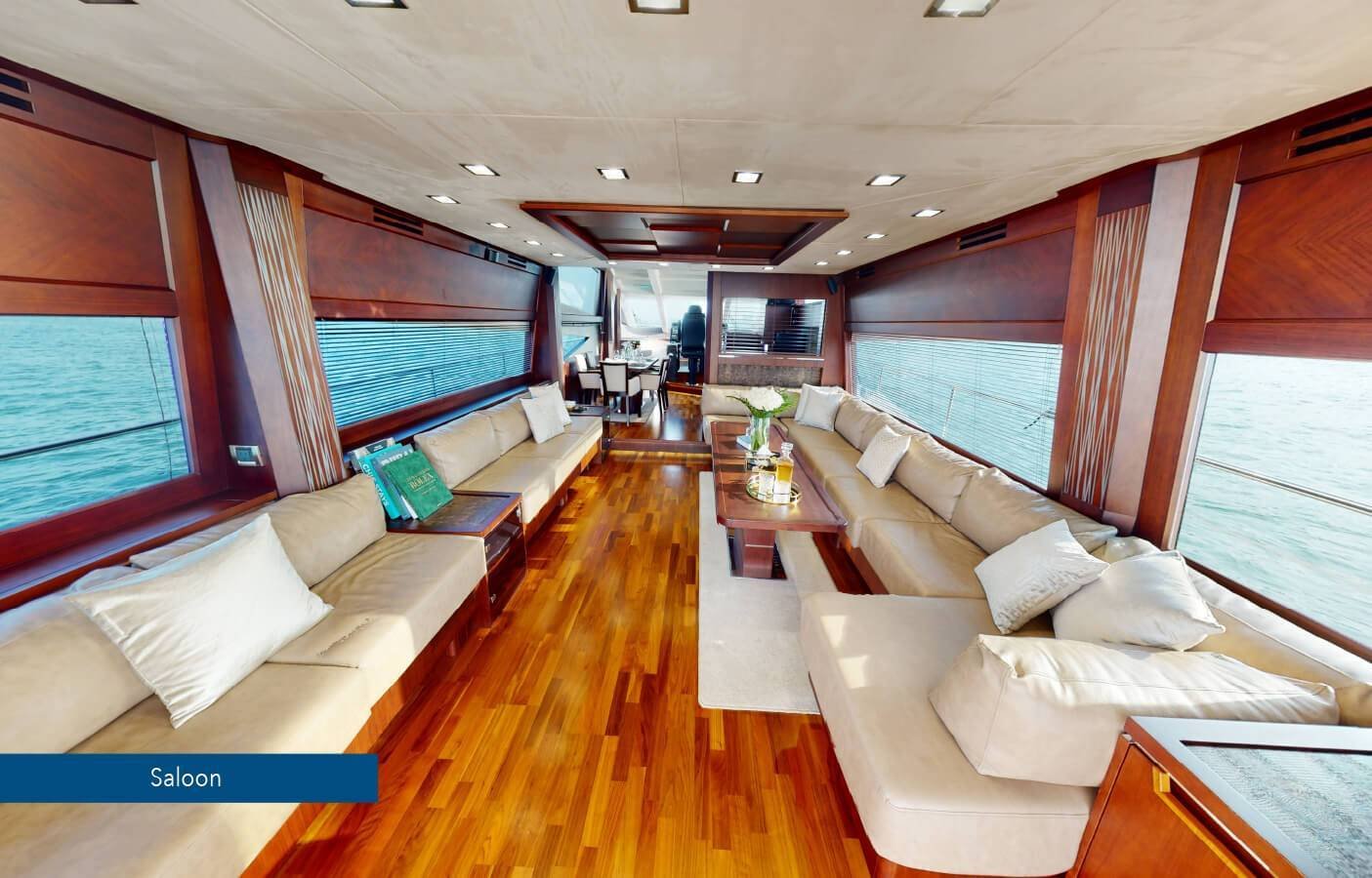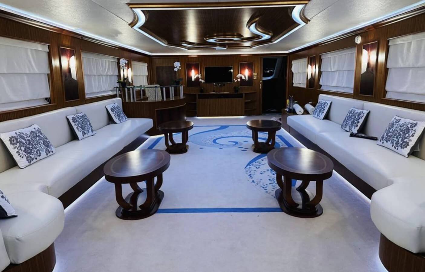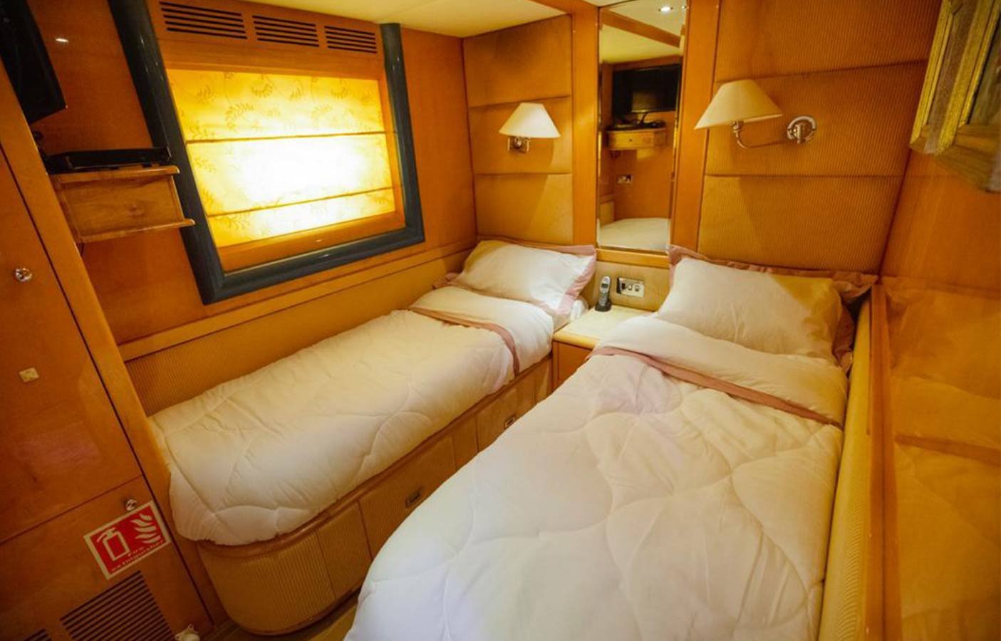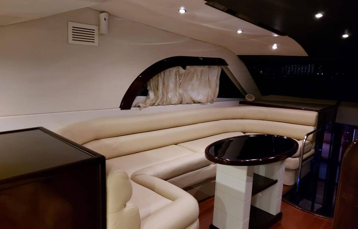 This stylishly built yacht can accommodate 15 guests at a time in its dining space both indoor and on the flybridge. It can also accommodate 6 guests overnight. There is 1 Master cabin, 1 Double cabin, and 1 twin cabin. The crew onboard ensures your comfort and takes care of all your needs, including cleaning, meals, and any help.