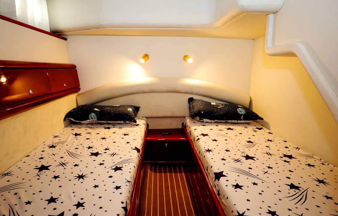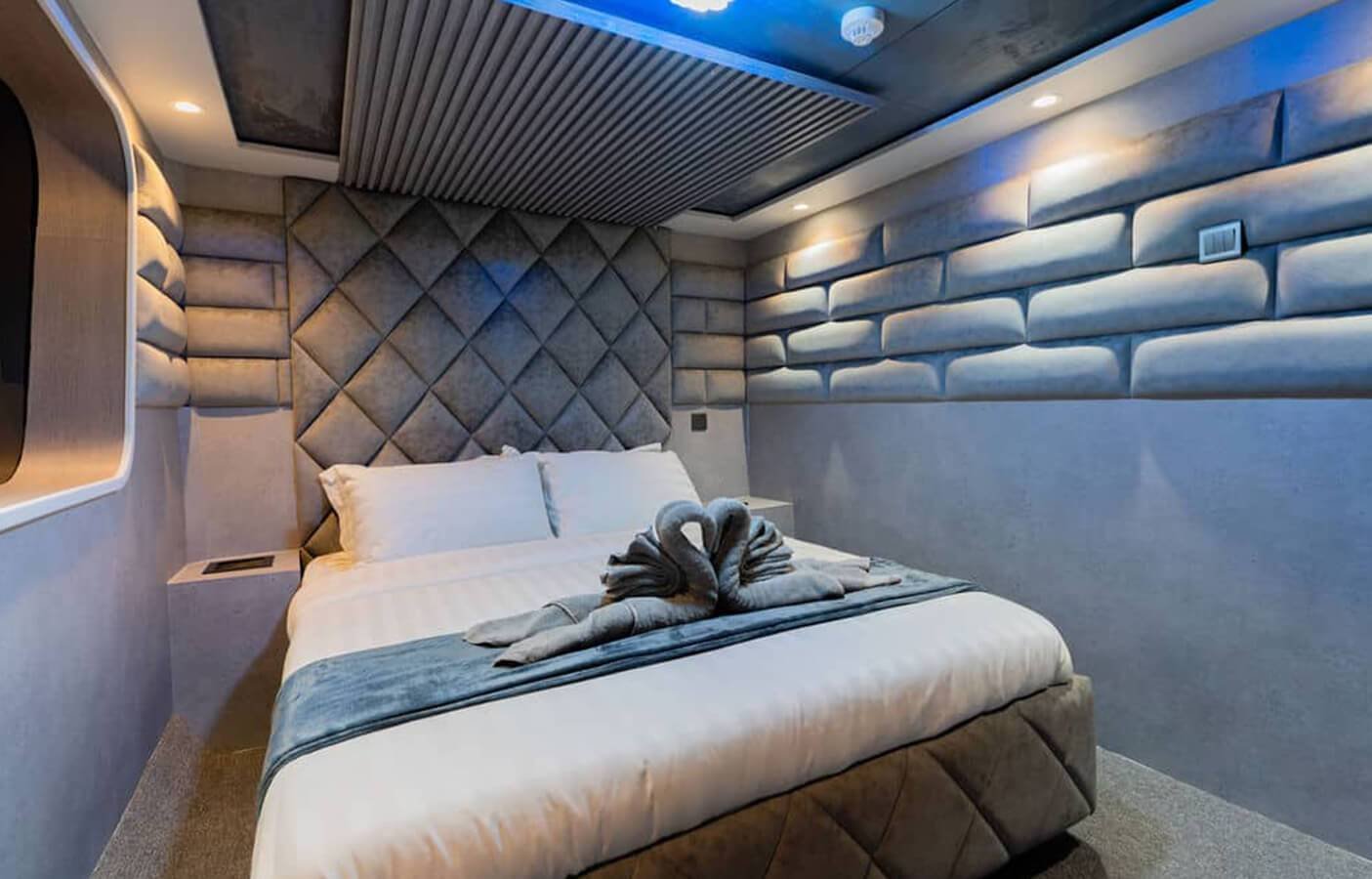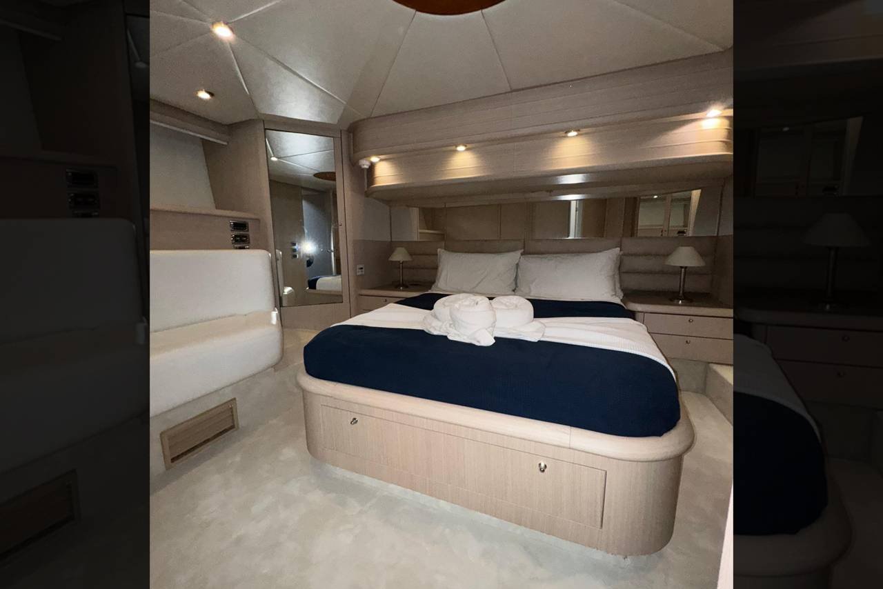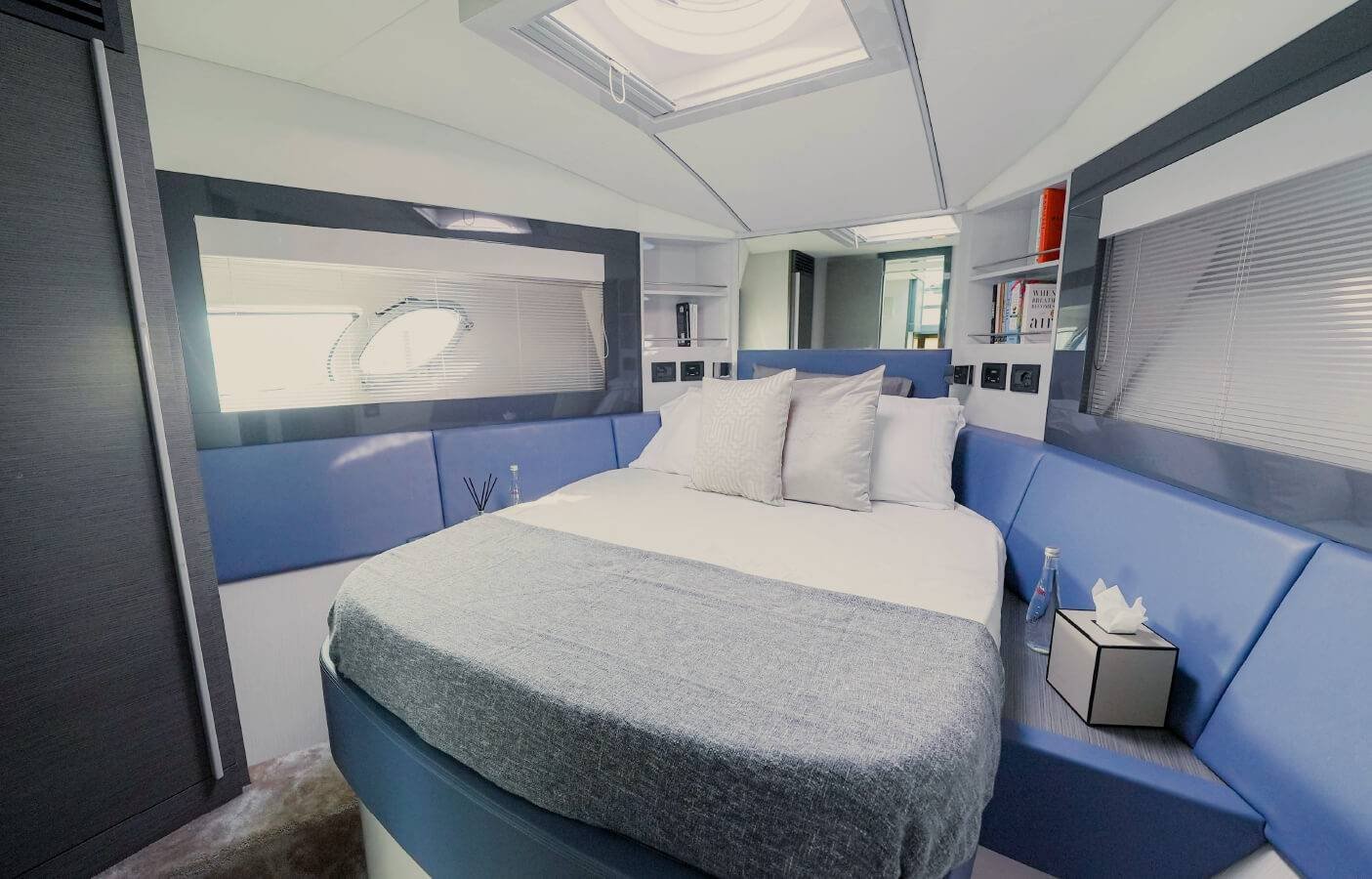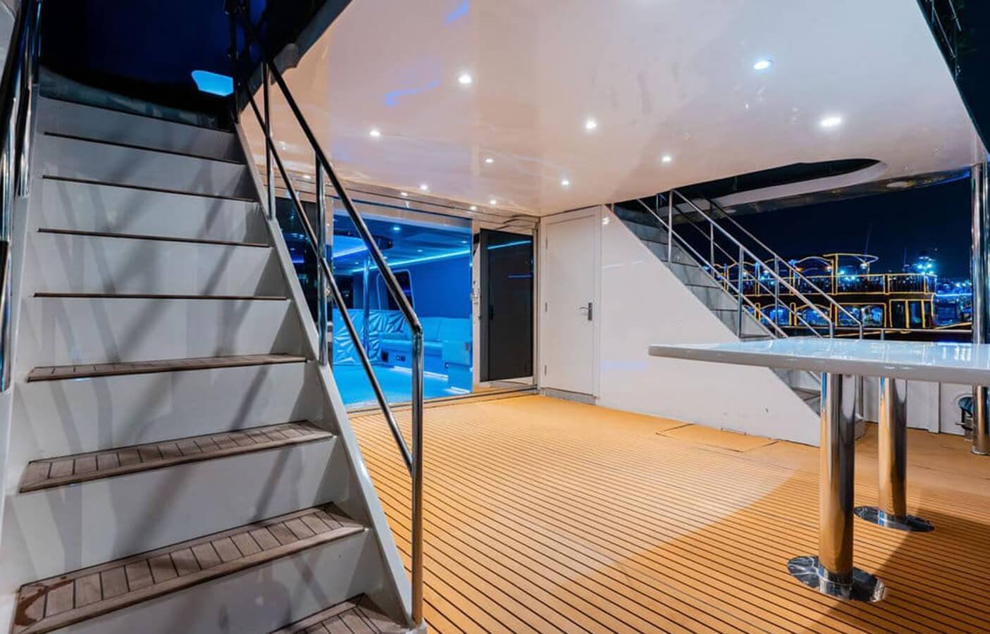 This stylishly built yacht can accommodate 15 guests at a time in its dining space both indoor and on the flybridge. It can also accommodate 6 guests overnight. There is 1 Master cabin, 1 Double cabin, and 1 twin cabin. The crew onboard ensures your comfort and takes care of all your needs, including cleaning, meals, and any help.
