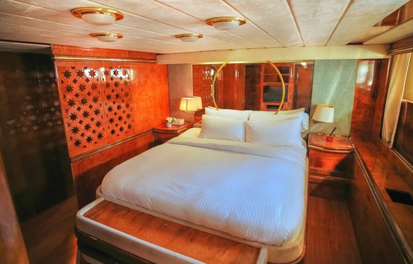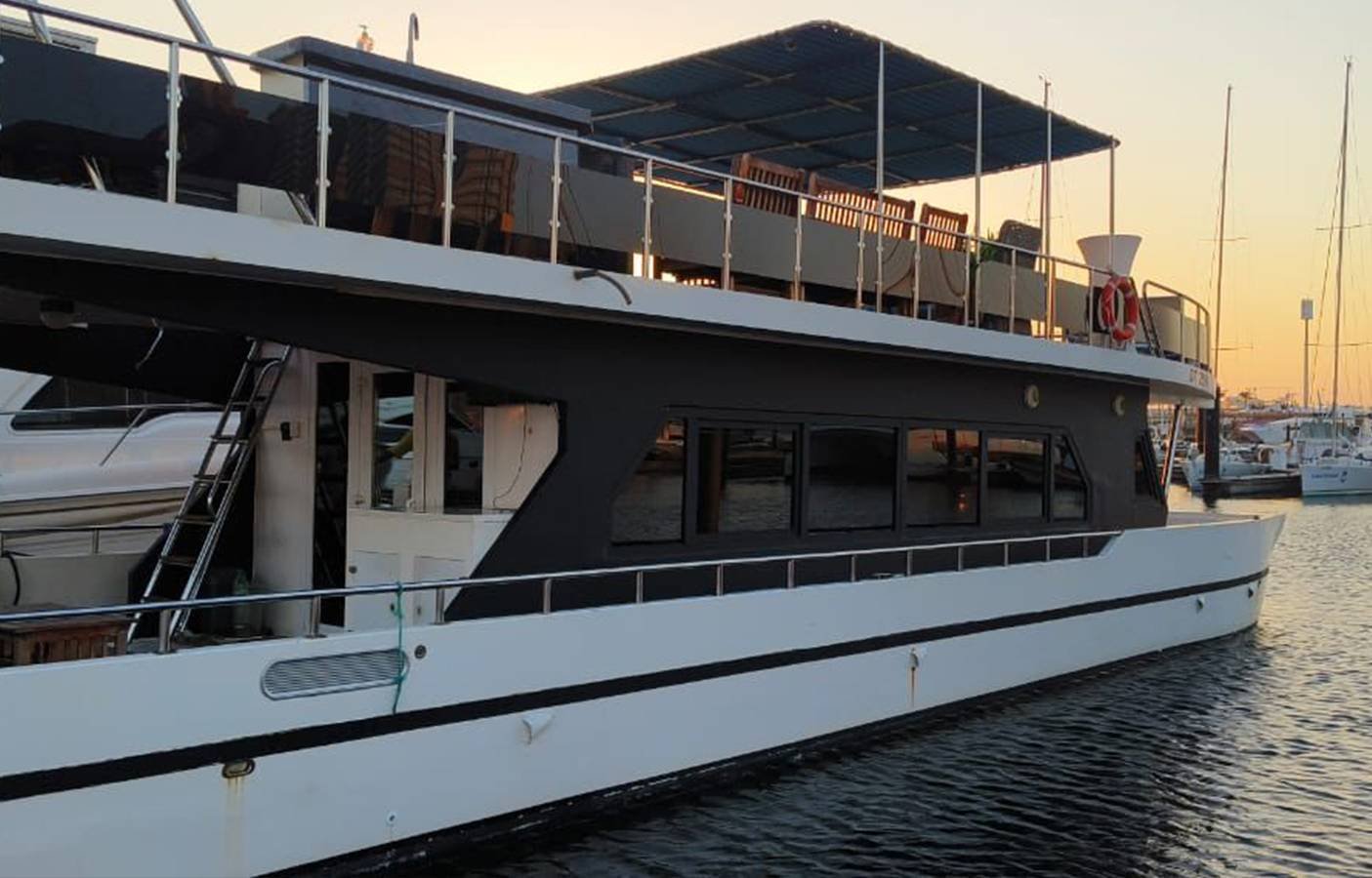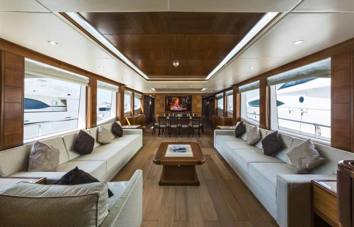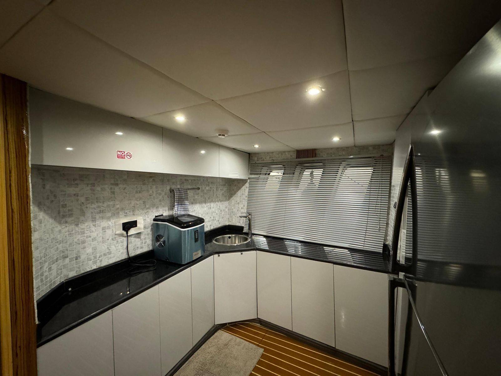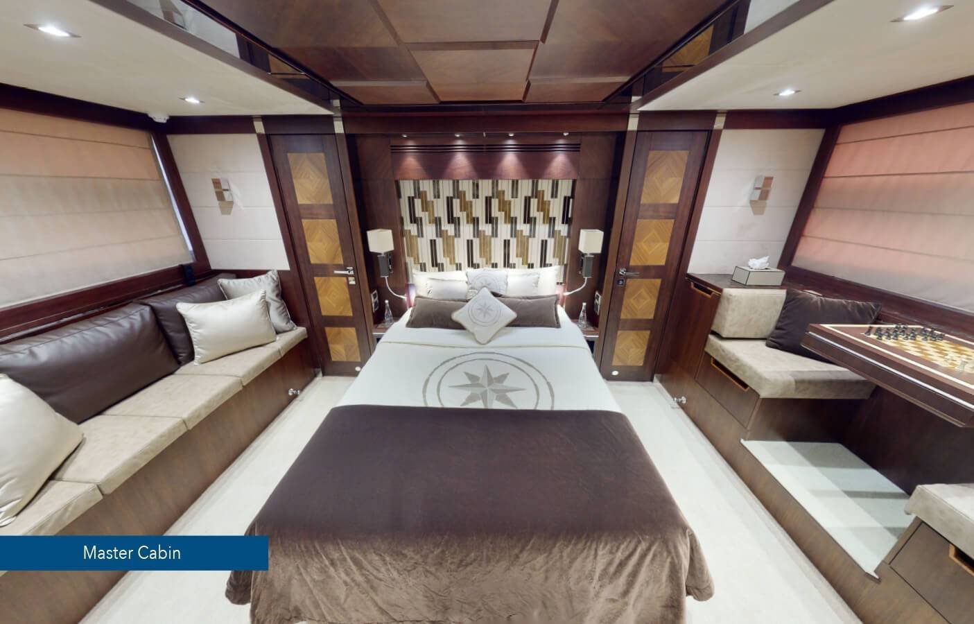This stylishly built yacht can accommodate 15 guests at a time in its dining space both indoor and on the flybridge. It can also accommodate 6 guests overnight. There is 1 Master cabin, 1 Double cabin, and 1 twin cabin. The crew onboard ensures your comfort and takes care of all your needs, including cleaning, meals, and any help.