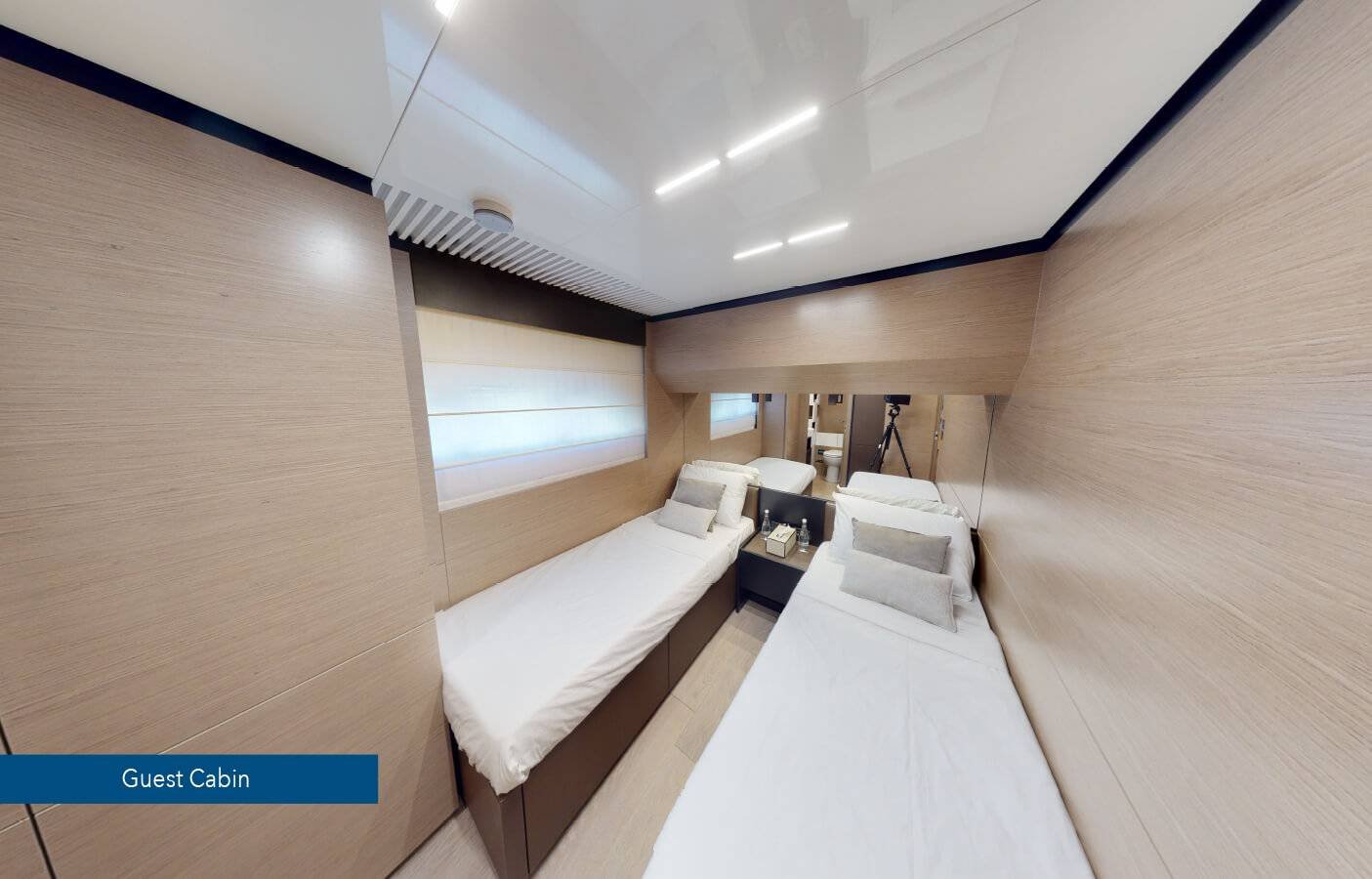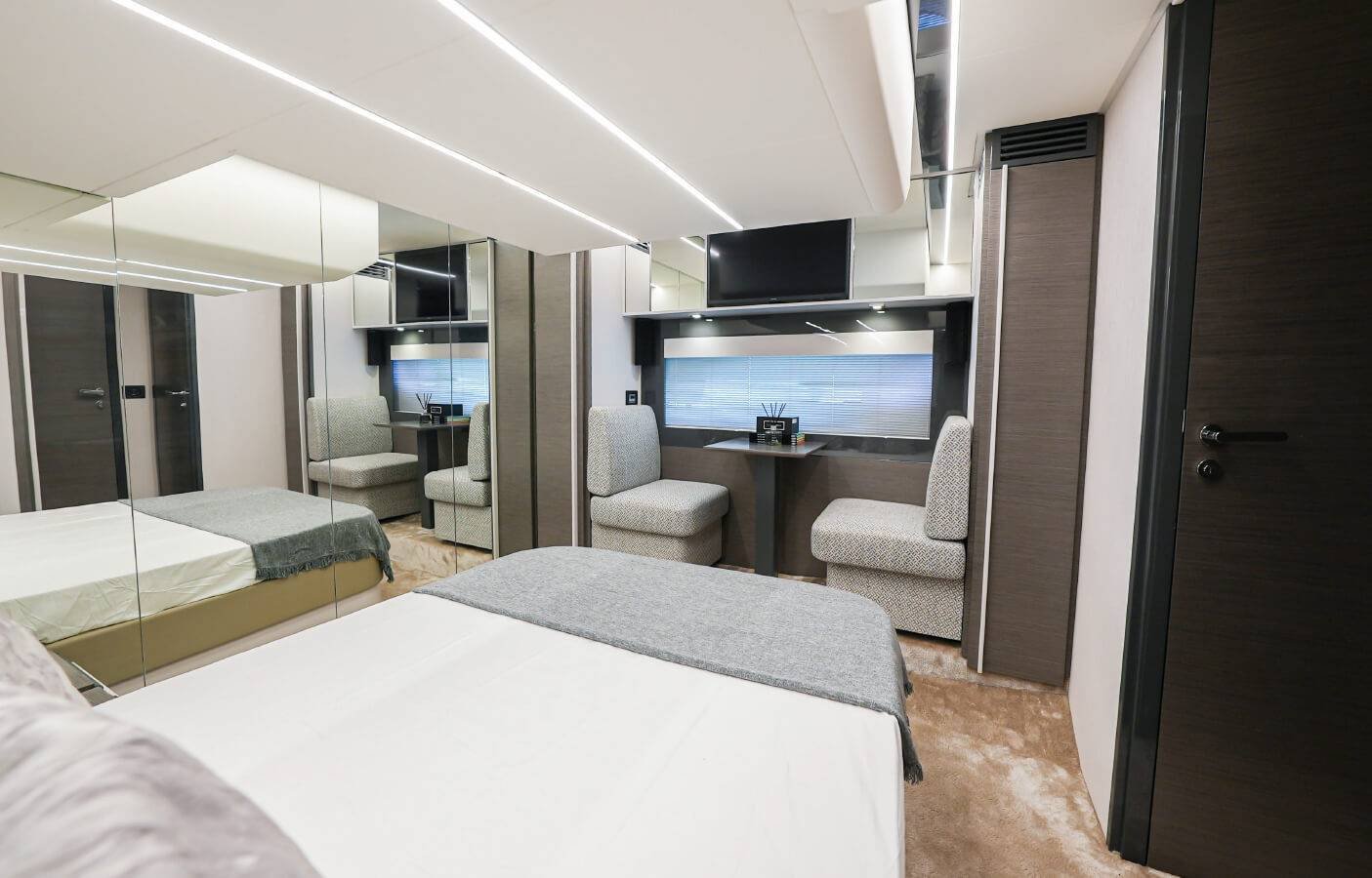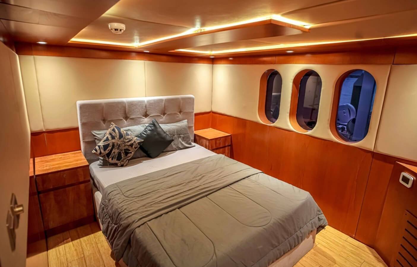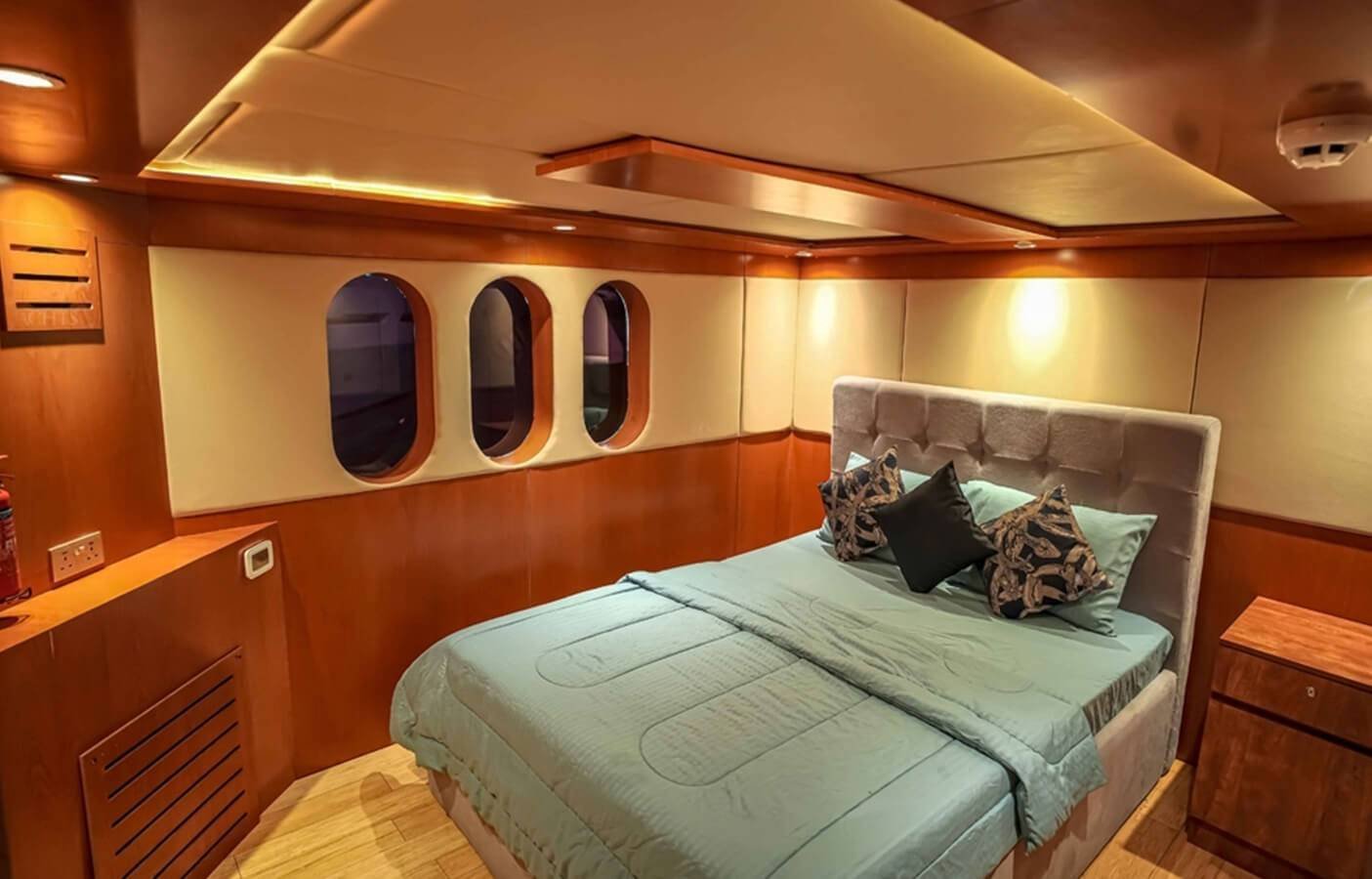 This stylishly built yacht can accommodate 15 guests at a time in its dining space both indoor and on the flybridge. It can also accommodate 6 guests overnight. There is 1 Master cabin, 1 Double cabin, and 1 twin cabin. The crew onboard ensures your comfort and takes care of all your needs, including cleaning, meals, and any help.