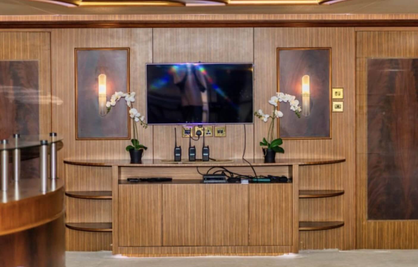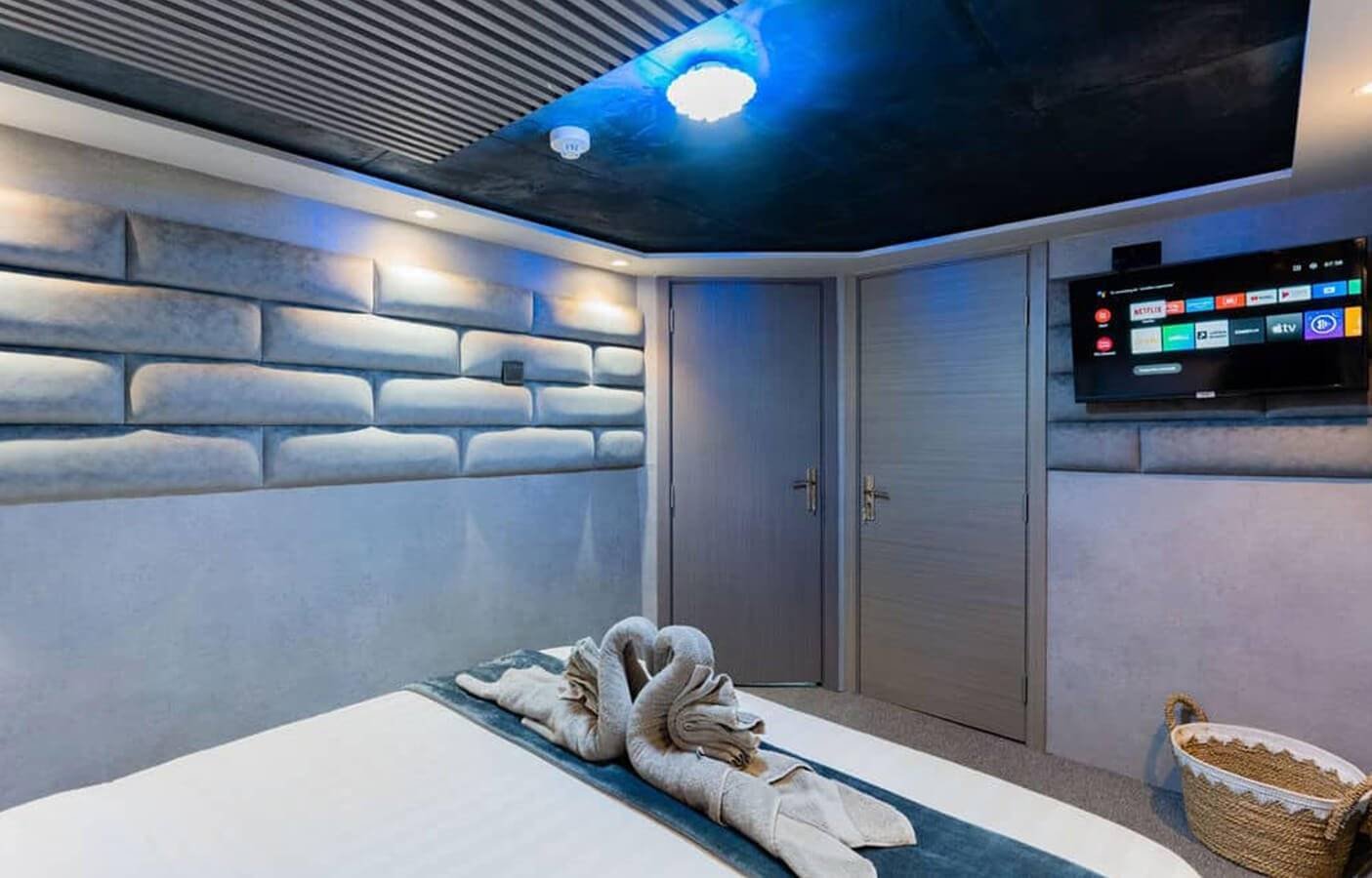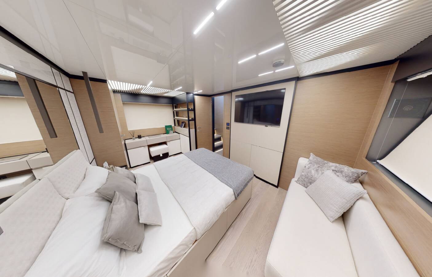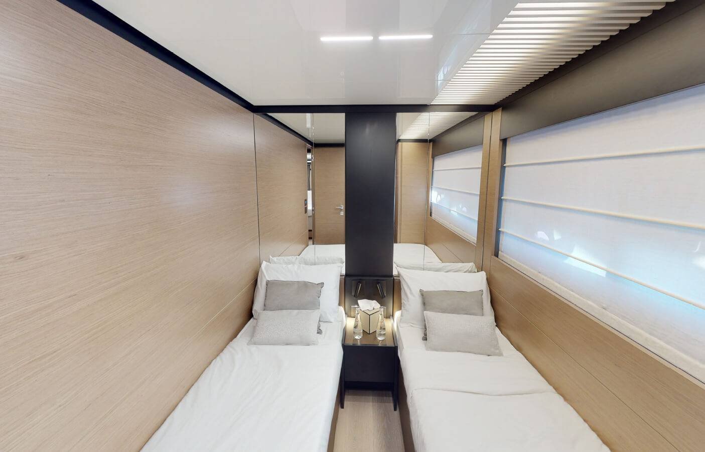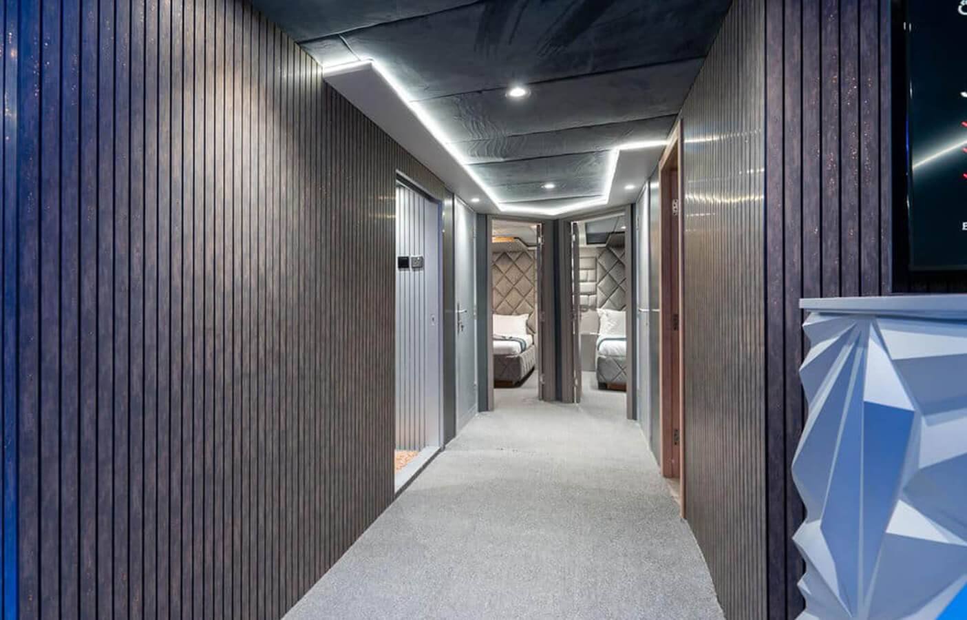 This stylishly built yacht can accommodate 15 guests at a time in its dining space both indoor and on the flybridge. It can also accommodate 6 guests overnight. There is 1 Master cabin, 1 Double cabin, and 1 twin cabin. The crew onboard ensures your comfort and takes care of all your needs, including cleaning, meals, and any help.