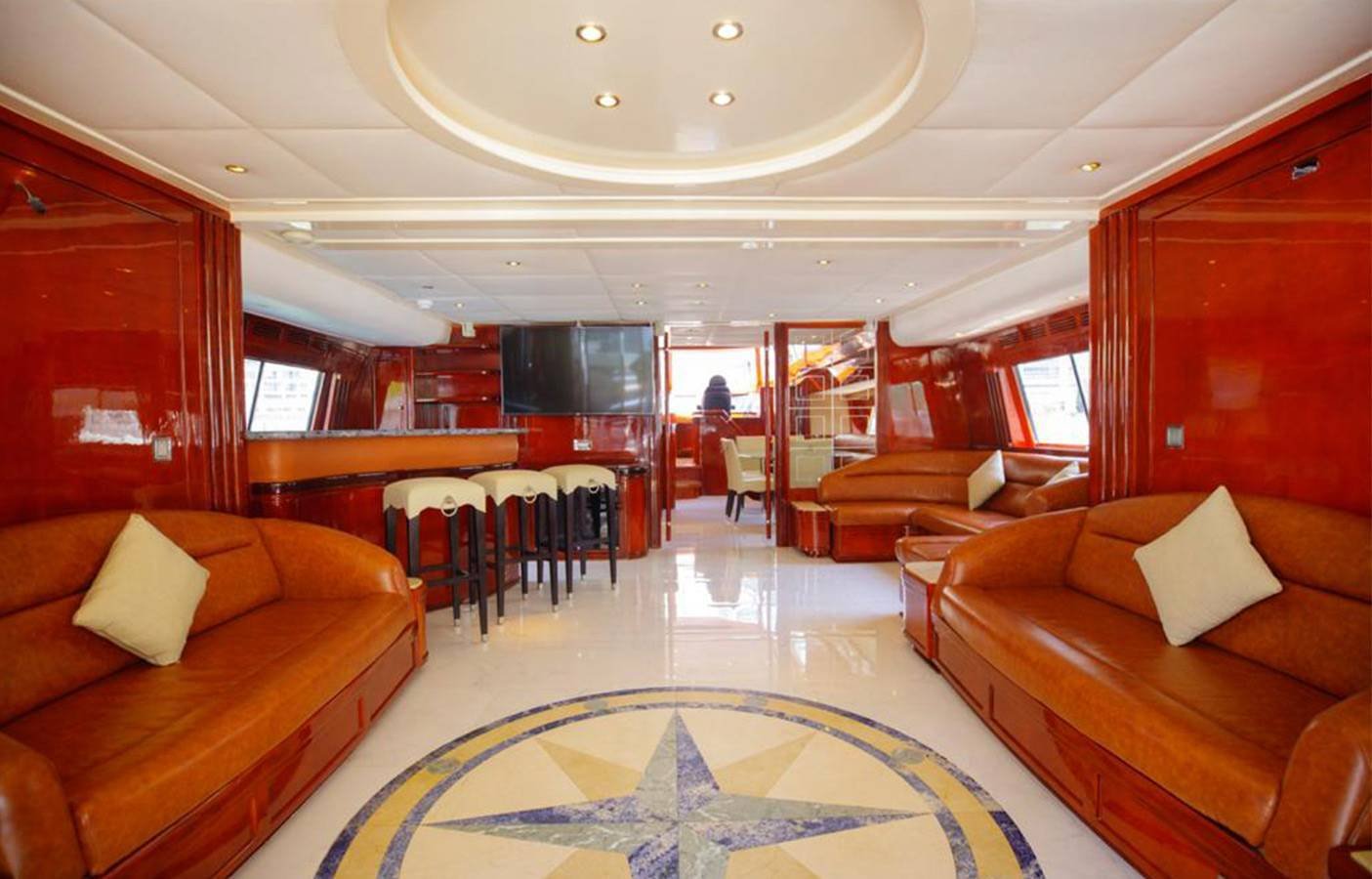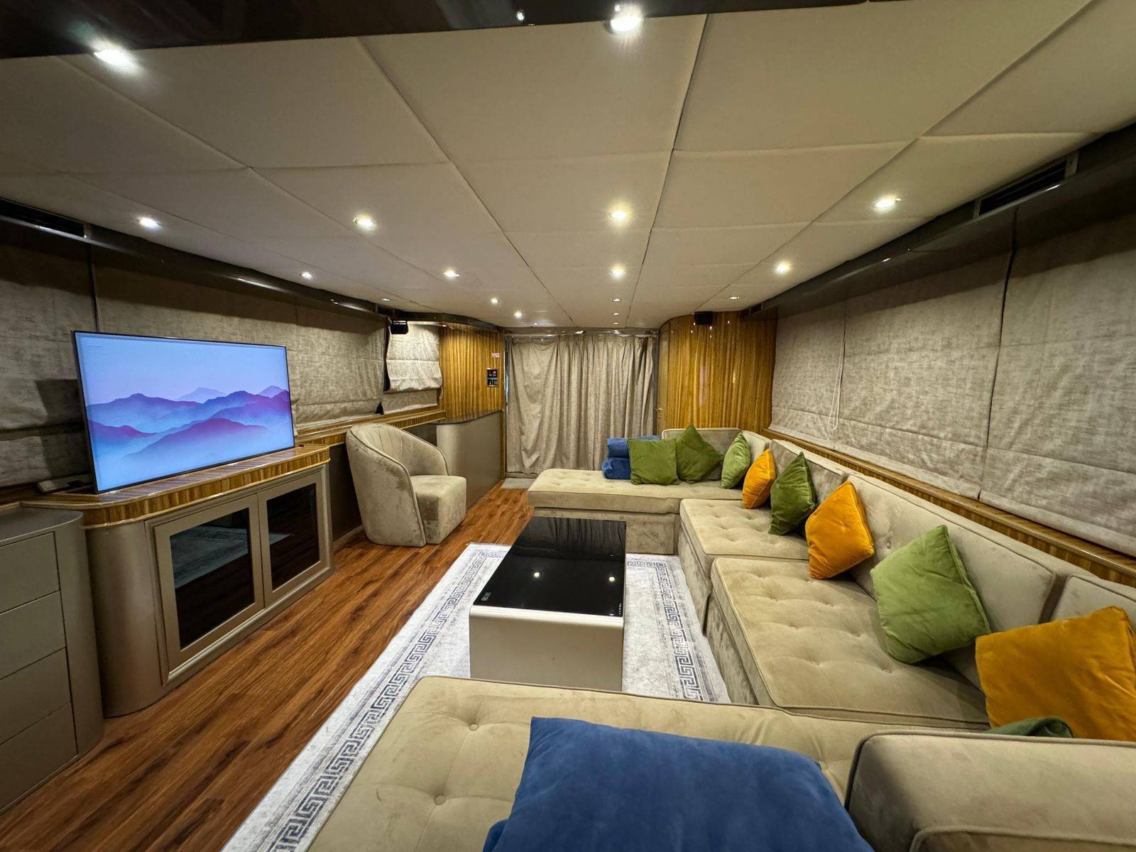 Our company is pleased to offers you the Super Luxury 110 feet Air-conditioned double-deck Yacht With with 4-bed room with very spacious Hall along with the washroom kitchen Satellite television, Music system and the very nice sitting place on the fly bride as well. Our price is Aed 2399 Each hour Only .. Our offer include the water soft drinks and ice along with very good music system and fully Air conditioned yacht and you can also bring your own food and drinks in yacht