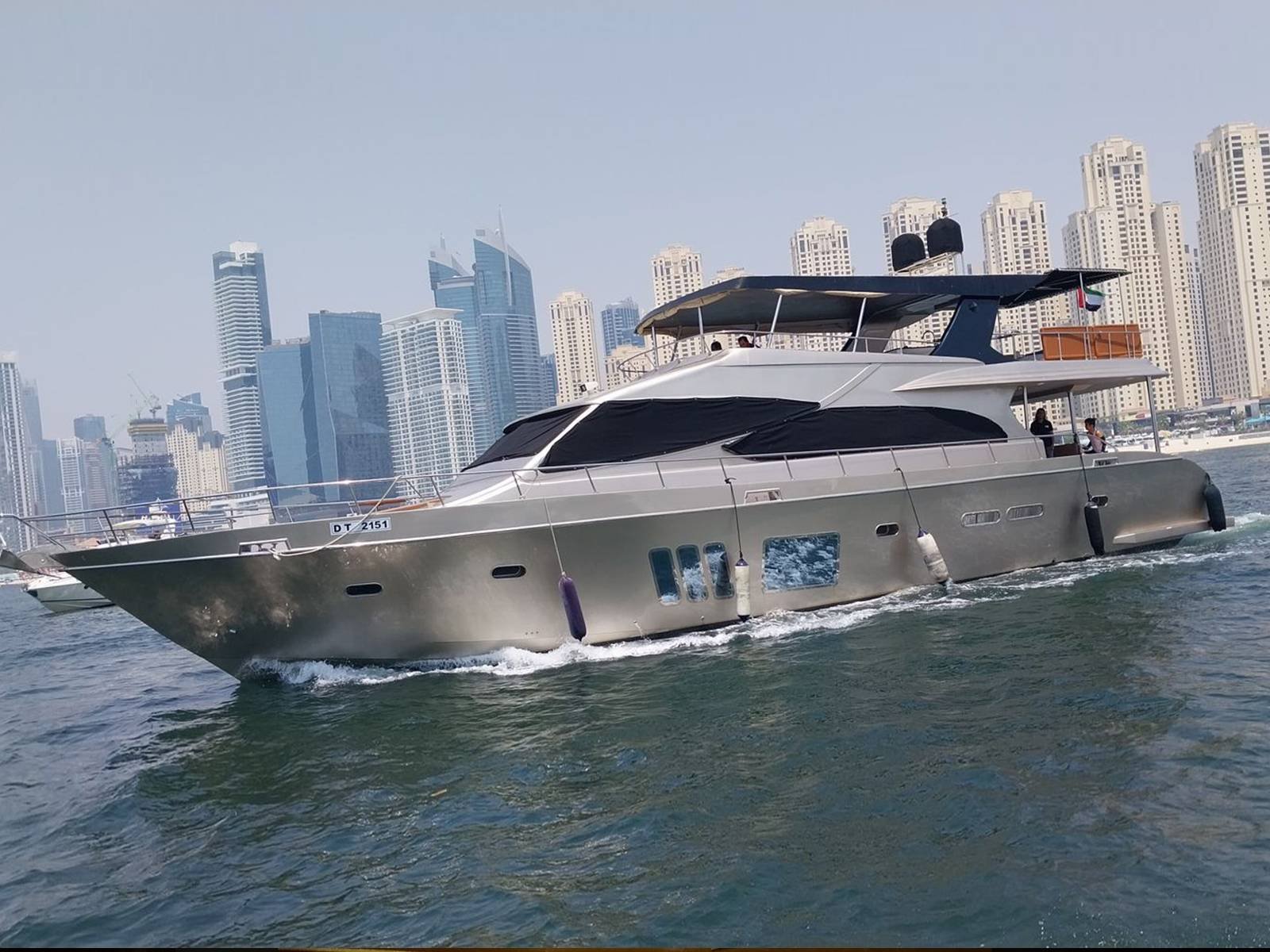 Our company is pleased to offers you the 95 feet double-deck Yacht Luxury private yacht rental With Jaccuzi with very spacious Hall along with the 3 bedrooms washroom kitchen, Music system and the very nice sitting place on the fly bridge as well in super discounted rates of Aed 2499 Each hour Only